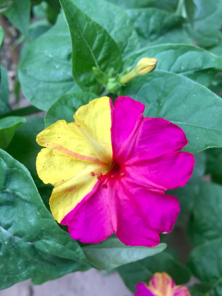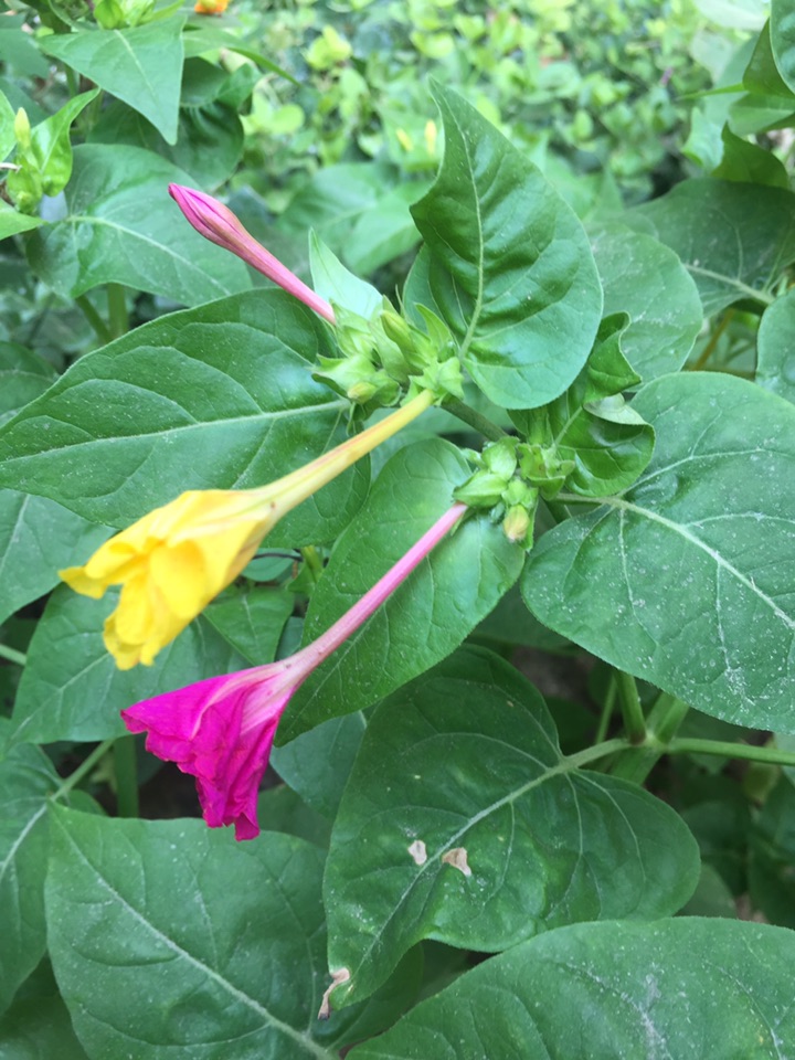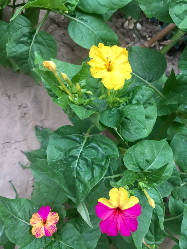 一棵紫茉莉竟然开出了几种不同颜色的花来!