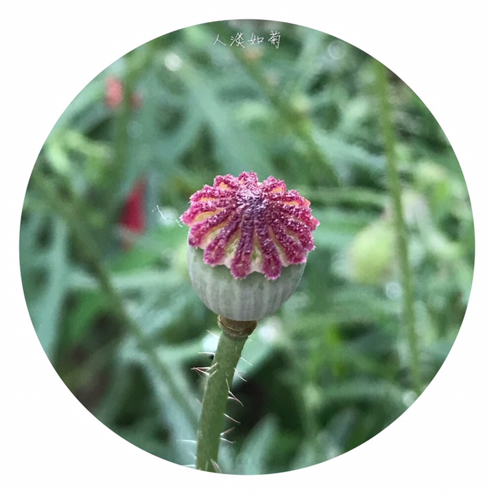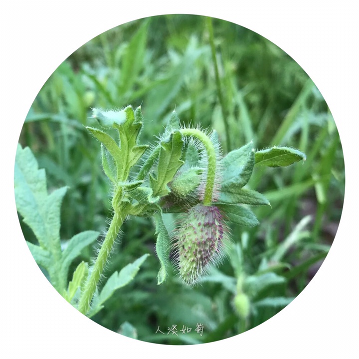 一年生草本植物,全体被伸展的刚毛,稀无毛。茎直立,高25-90厘米,具分枝,被淡黄色刚毛。叶互生,叶片轮廓披针形或狭卵形,长3-15厘米,宽1-6厘米,羽状分裂,下部全裂,全裂片披针形和二回羽状浅裂,上部深裂或浅裂、裂片披针形,最上部粗齿状羽状浅裂,顶生裂片通常较大,小裂片先端均渐尖,两面被淡黄色刚毛,叶脉在背面突起,在表面略凹;下部叶具柄,上部叶无柄。花单生于茎和分枝顶端;花梗长10-15厘米,被淡黄色平展的刚毛。花蕾长圆状倒卵形,下垂;萼片2,宽椭圆形,长1-1.8厘米,绿色,外面被刚毛;花瓣4,圆形、横向宽椭圆形或宽倒卵形,长2.5-4.5厘米,全缘,稀圆齿状或顶端缺刻状,紫红色,基部通常具深紫色斑点;雄蕊多数,花丝丝状,长约8毫米,深紫红色,花药长圆形,长约1毫米,黄色;子房倒卵形,长7-10毫米,无毛,柱头5-18,辐射状,连合成扁平、边缘圆齿状的盘状体。蒴果宽倒卵形,长1-2.2厘米,无毛,具不明显的肋。种子多数,肾状长圆形,长约1毫米。花果期3-8月。