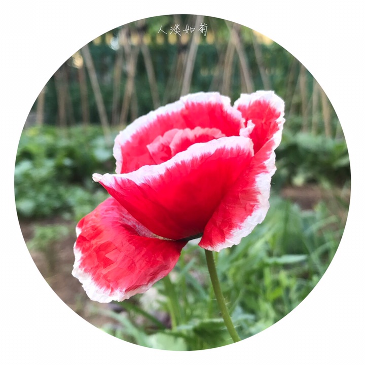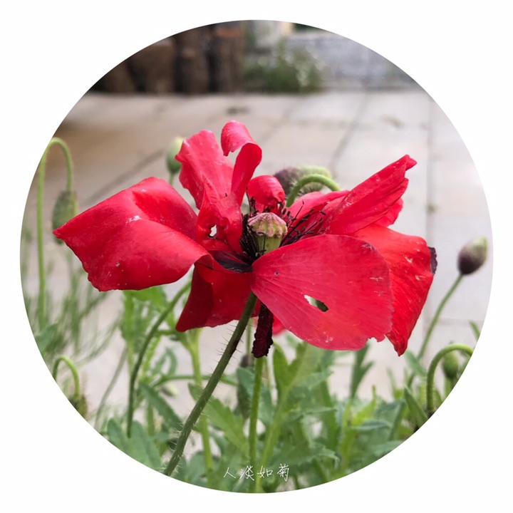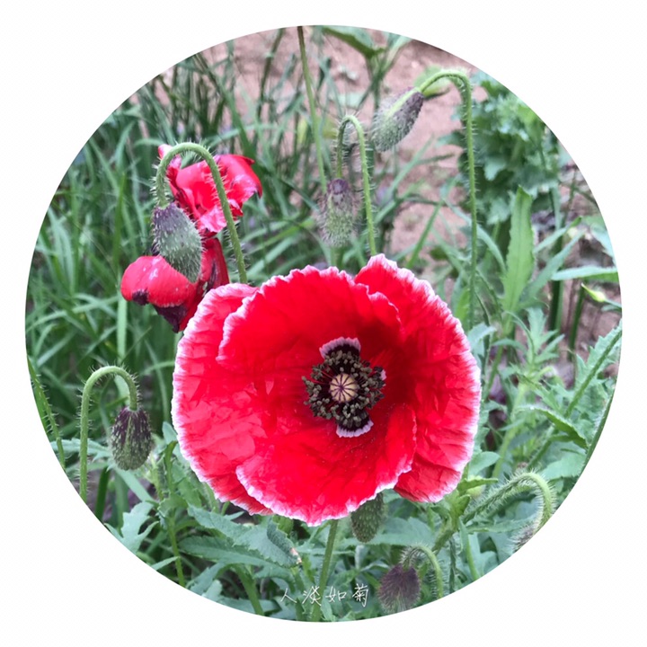 虞美人(学名:Papaver rhoeas L.),别称丽春花、赛牡丹、满园春、仙女蒿、虞美人草、舞草。一年生草本植物,全体被伸展的刚毛,稀无毛。茎直立,高25-90厘米,具分枝。叶片轮廓披针形或狭卵形,羽状分裂,裂片披针形。花单生于茎和分枝顶端,花蕾长圆状倒卵形,下垂;萼片2,宽椭圆形;花瓣4,圆形、横向宽椭圆形或宽倒卵形,长2.5-4.5厘米,全缘,稀圆齿状或顶端缺刻状,紫红色,基部通常具深紫色斑点。蒴果宽倒卵形,长1-2.2厘米,无毛,具不明显的肋。种子多数,肾状长圆形,长约1毫米。花果期3-8月。