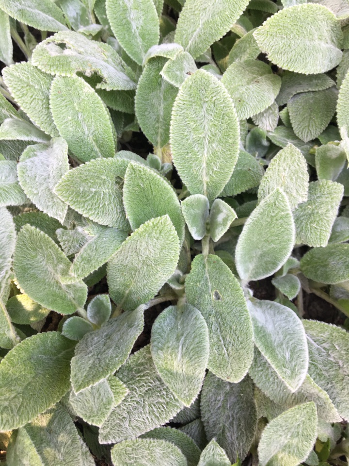 “小白兔,白又白,两只耳朵竖起来”,绵毛水苏叶子上的绒毛可爱吧?立起来的两片叶子真的像兔子耳朵呢。