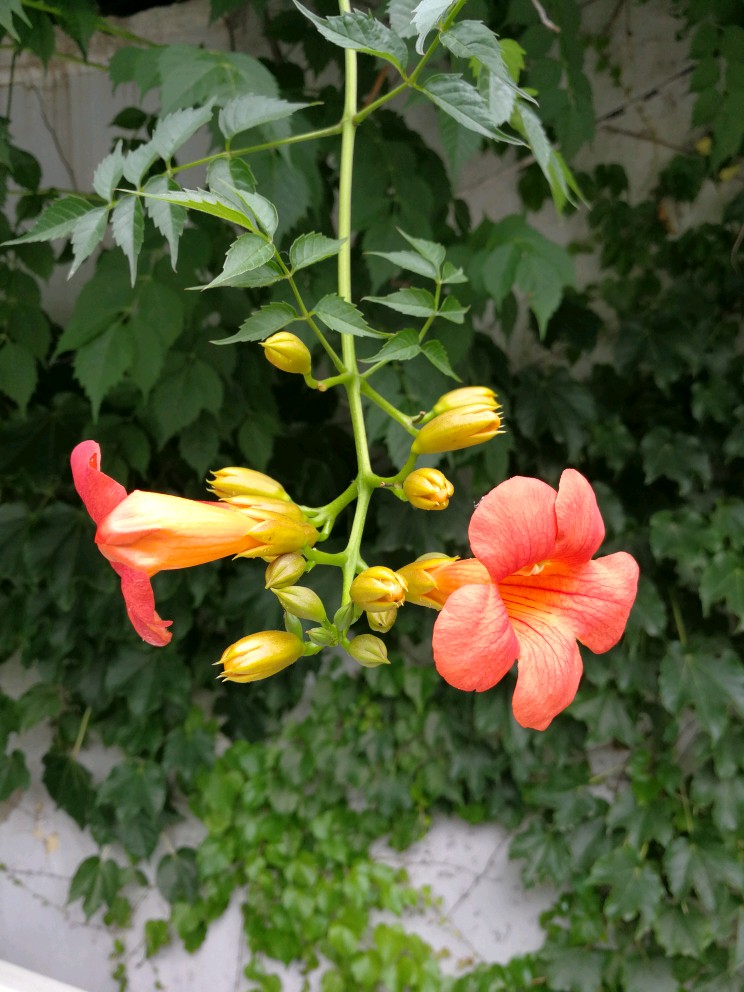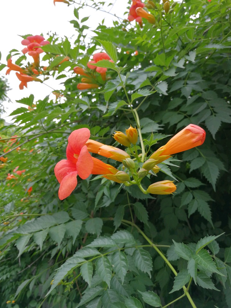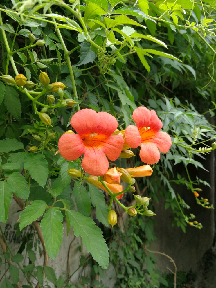 农历五月初五,端午初夏,凌霄花又和大家见面了。朵朵花儿外形酷似小喇叭,哒的哒!