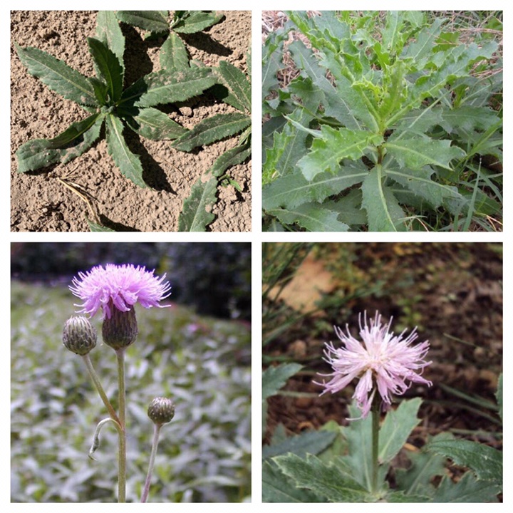 小蓟(刺儿菜)、蓟、大蓟(飞廉)、大花蓟(漏芦)等开的花极相似,难以分辨。