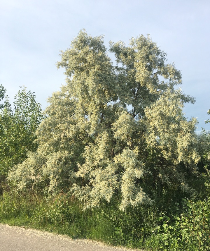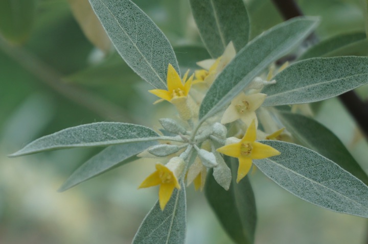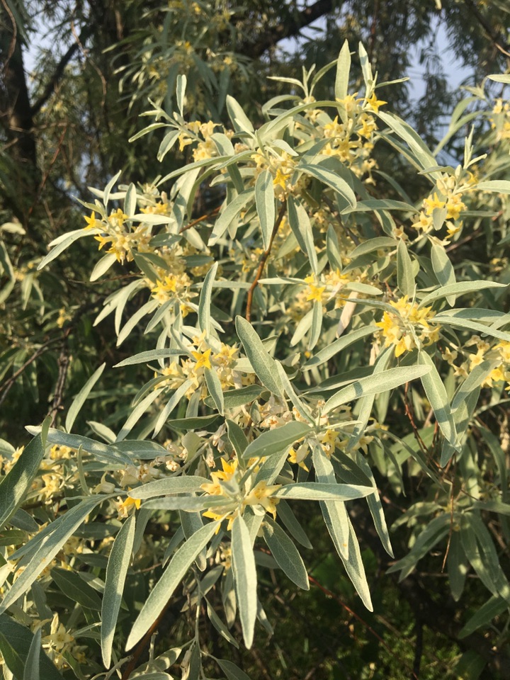 有一棵树,远远望去像橄榄,走近了有浓浓的香,叶如柳,香如蜜,叶子有沙洗后的陈旧感,形色说是沙枣。