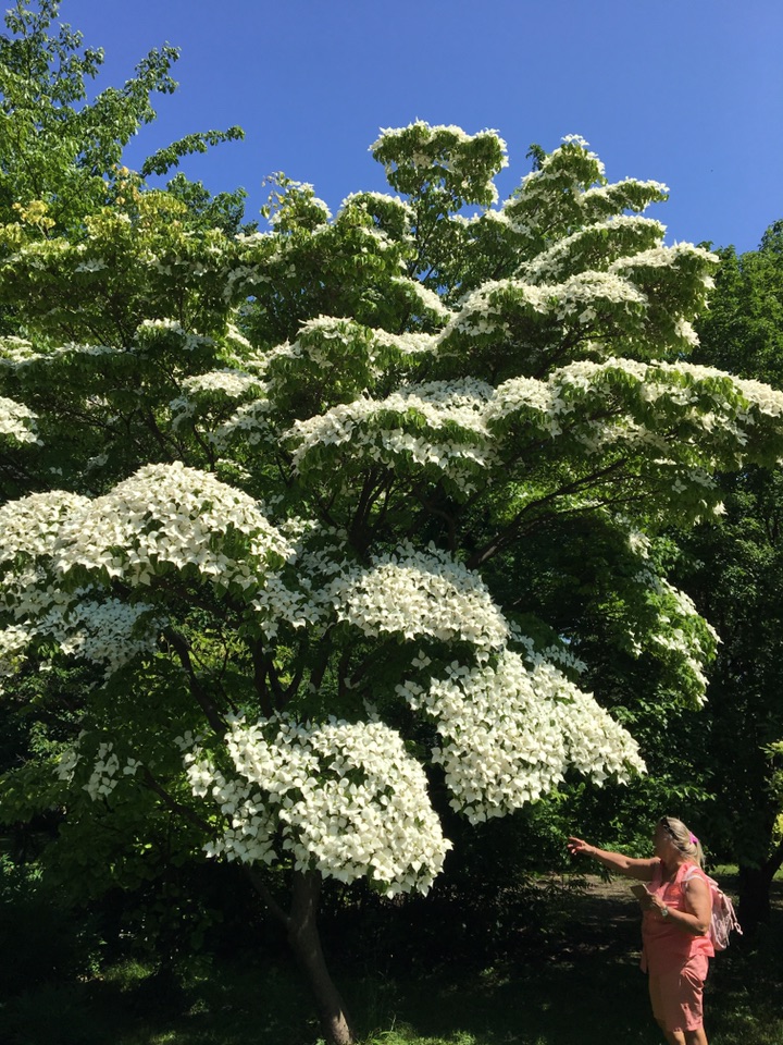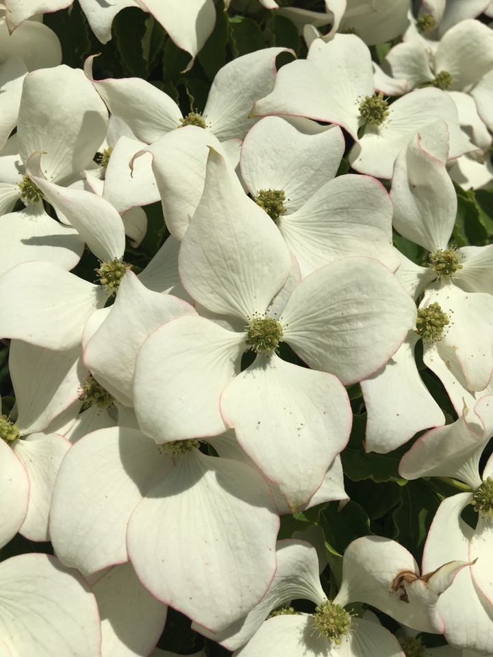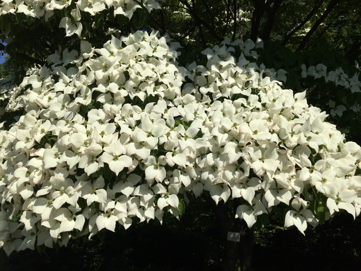 在维也纳大学植物园,发现一棵长疯了的白色四照花,开花的地方,层层叠叠的花瓣相互覆盖着,几乎看不到叶子,这是从来都没有见过的,而且有些花瓣的边缘带着粉边,煞是好看。
