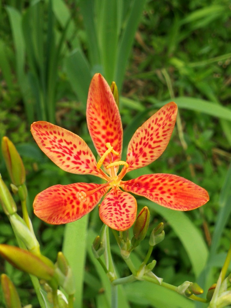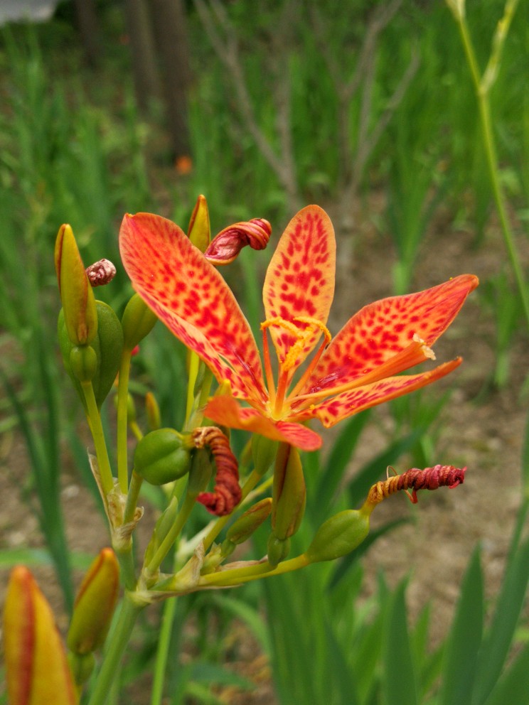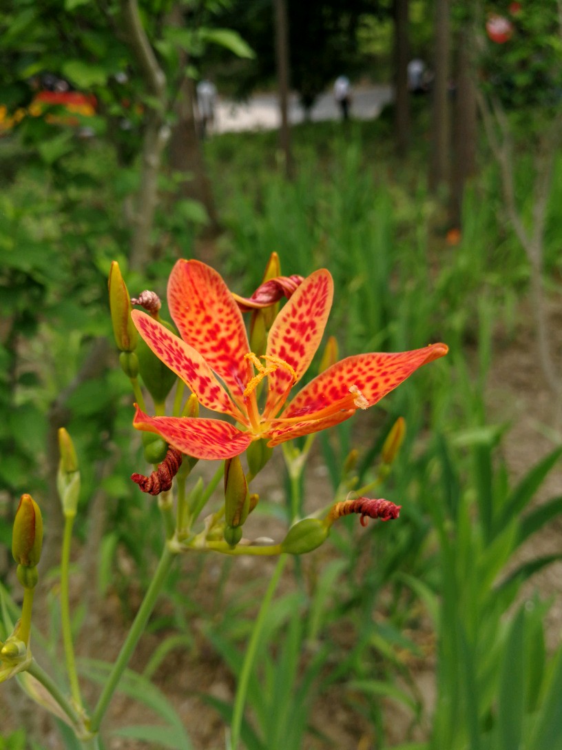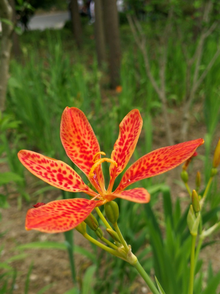 公园里很多,初开。如果不看花,射干的植株和鸢尾很类似的。