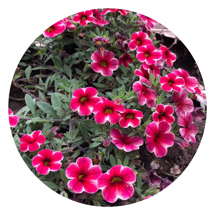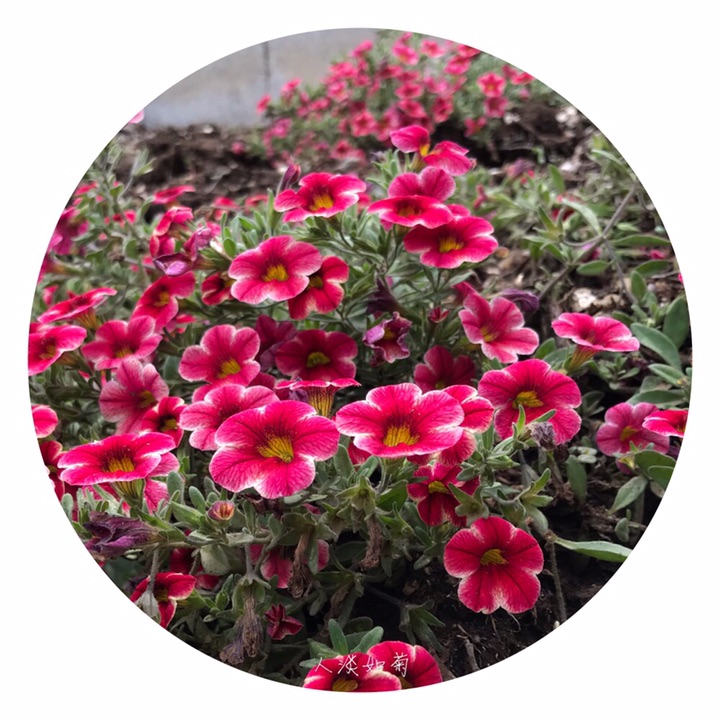 百万小铃,拉丁学名Calibrchoa ‘Million Bells’ 别称小花矮牵牛、舞春花。茄科碧冬茄属多年生草本,常作一、二年生栽培。株高15~80cm,也有丛生和匍匐类型; 叶椭圆或卵圆形; 播种后当年可开花。花期长达数月,花冠喇叭状; 花形有单瓣、重瓣、瓣缘皱褶或呈不规则锯齿等; 花色有红、白、粉、紫及各种带斑点、网纹、条纹等。