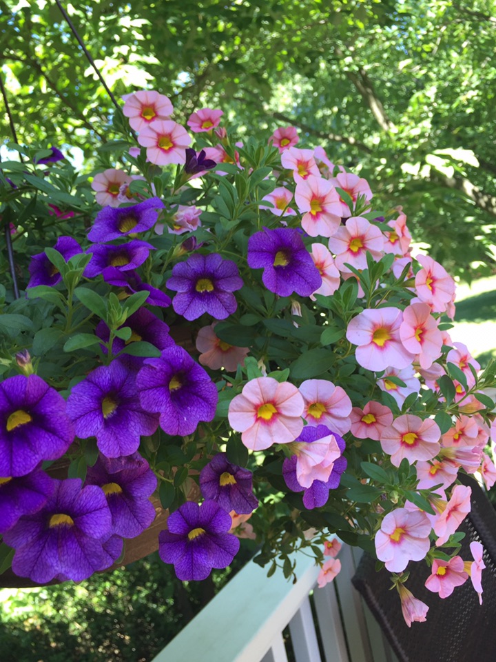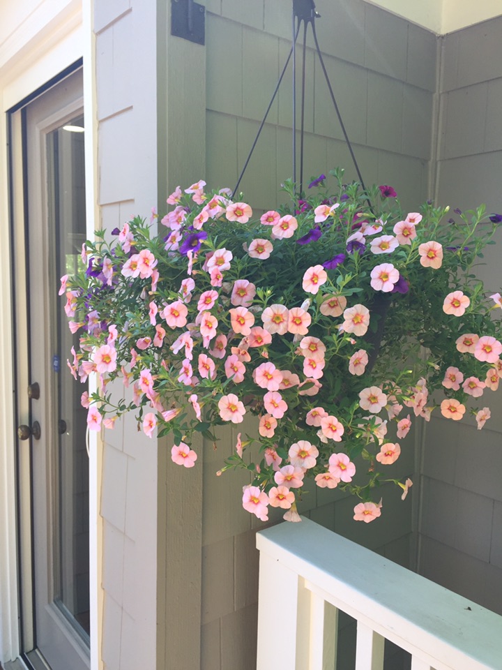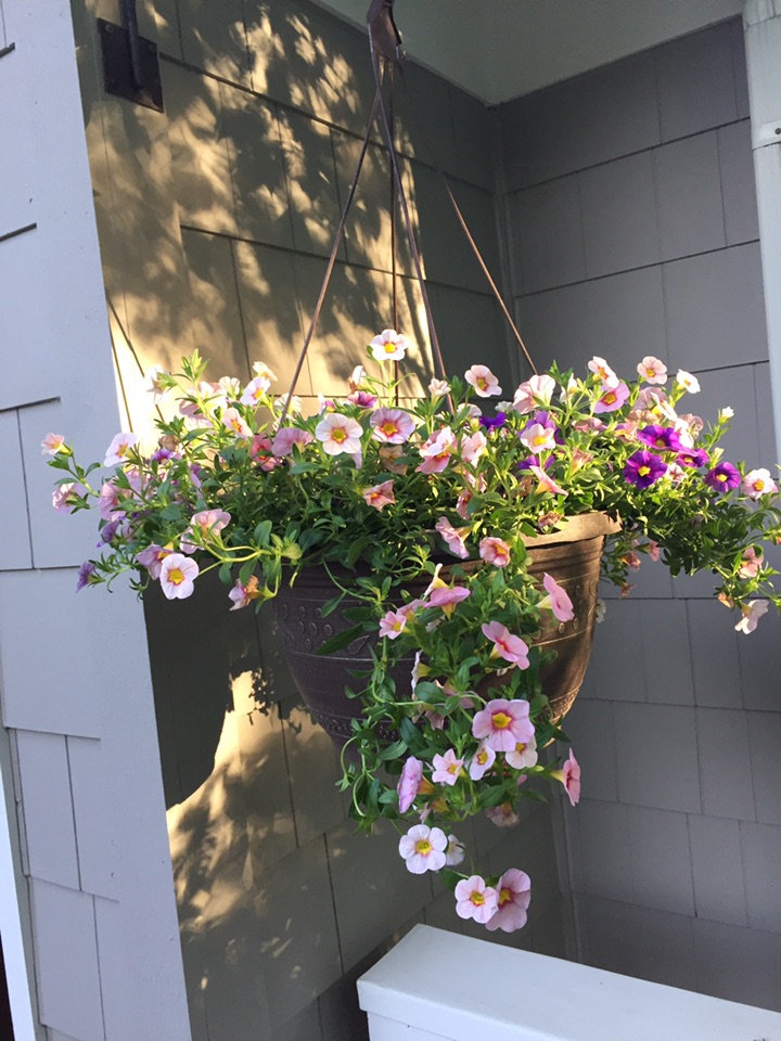 每年春季、各花店开始忙碌起来之时,小城花店里除了各种各样的、可移植的花花草草外,大大小小、品种各异的吊盆花也是令人眼花缭乱、难以选择。小城里几乎家家户户的deck上、房前门廊外都会挂上一盆吊盆花;奇怪的是,像是约好似的,也像比赛似的,往往是一夜之间、第二天早起时,便发现那一盆盆吊盆花就悠悠然、优雅、美丽地在阳光下绽放了 ...