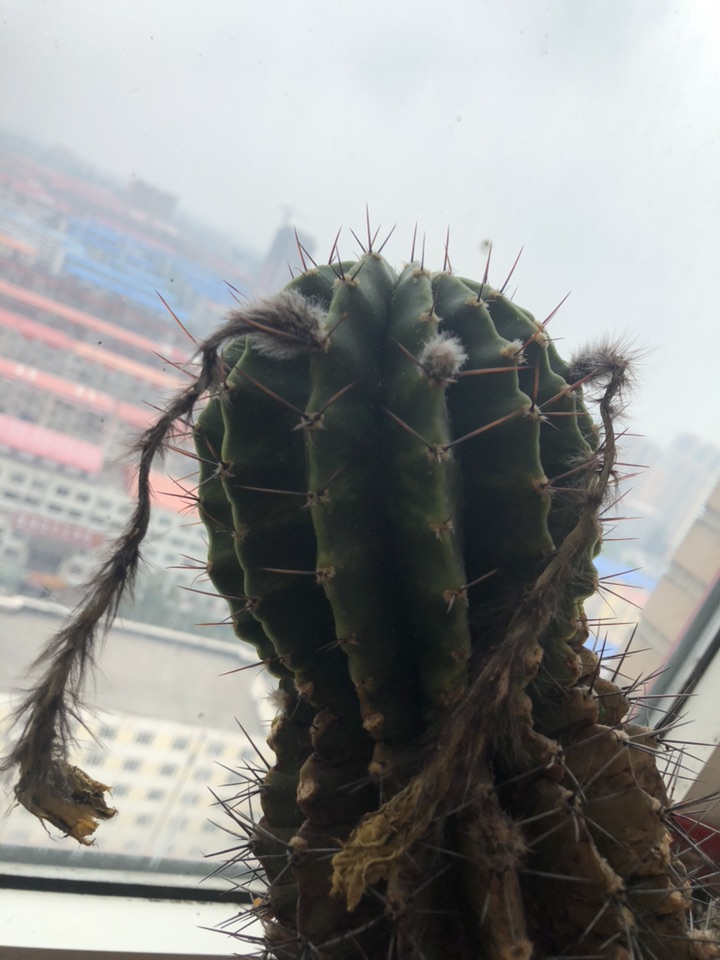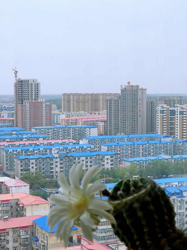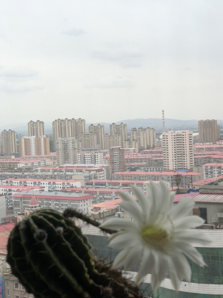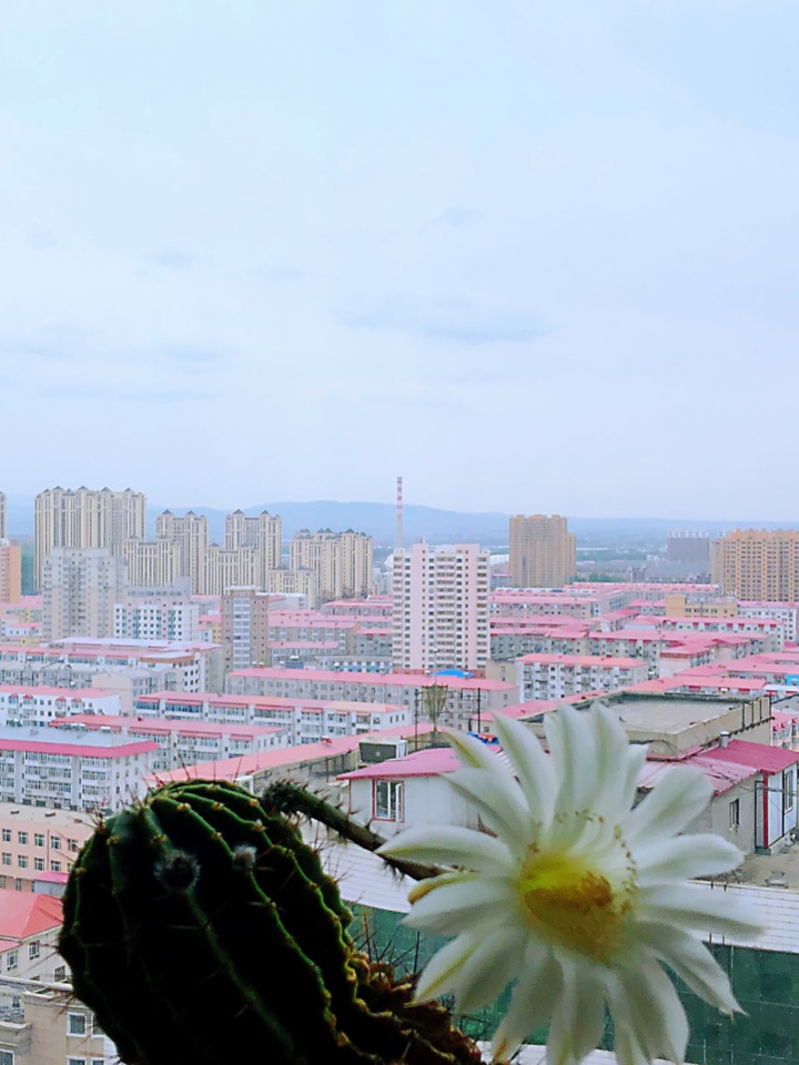 我家的仙人球越长越高了, 年年开花 。