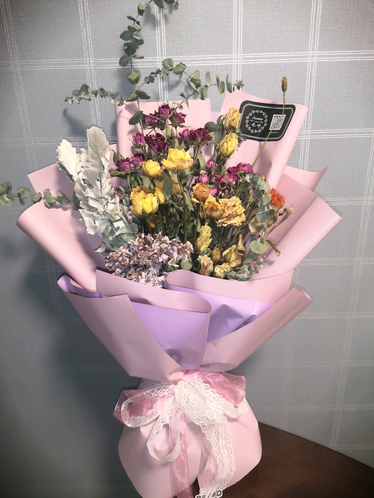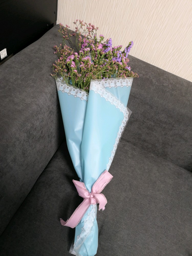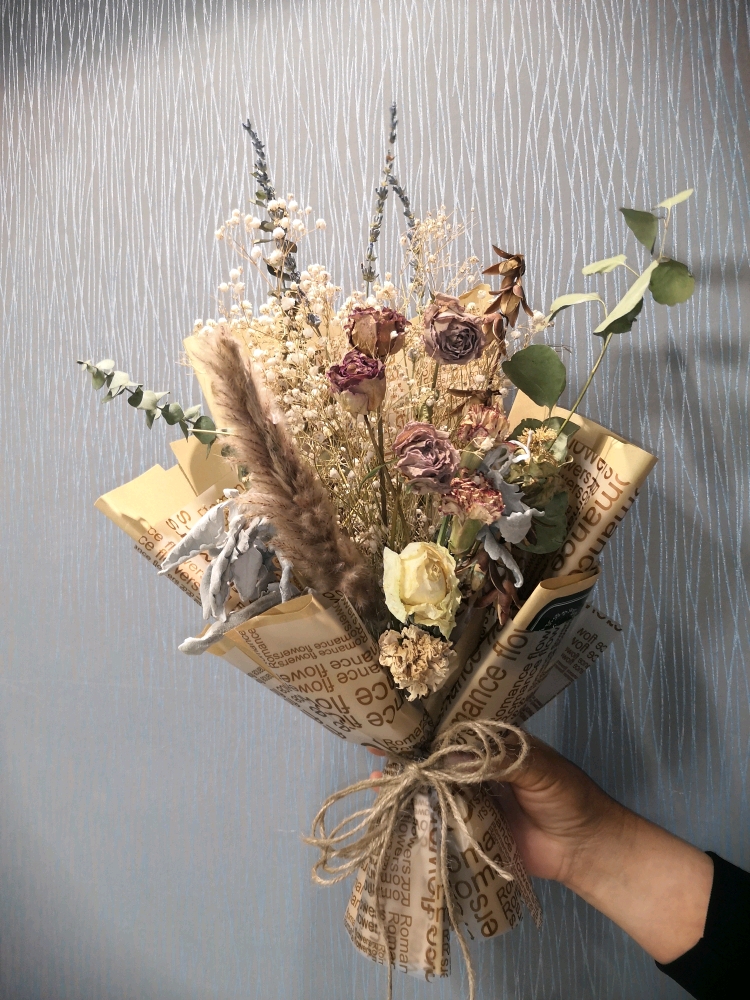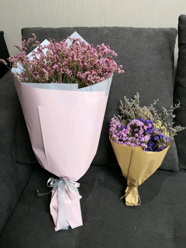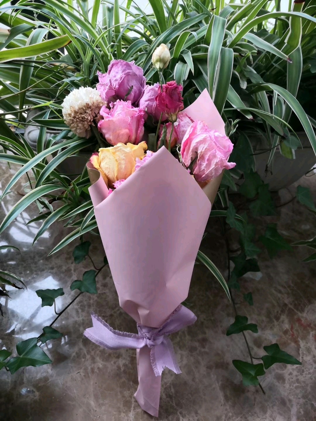 最后我用鲜花花束拆掉的包装纸包了个小干束。