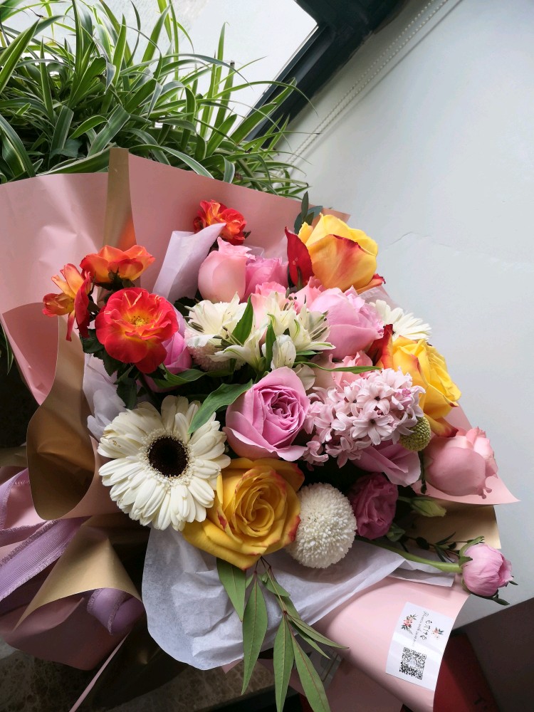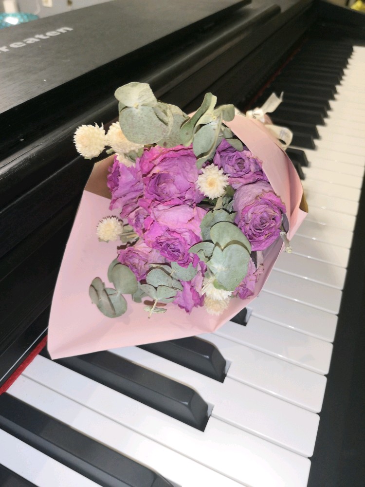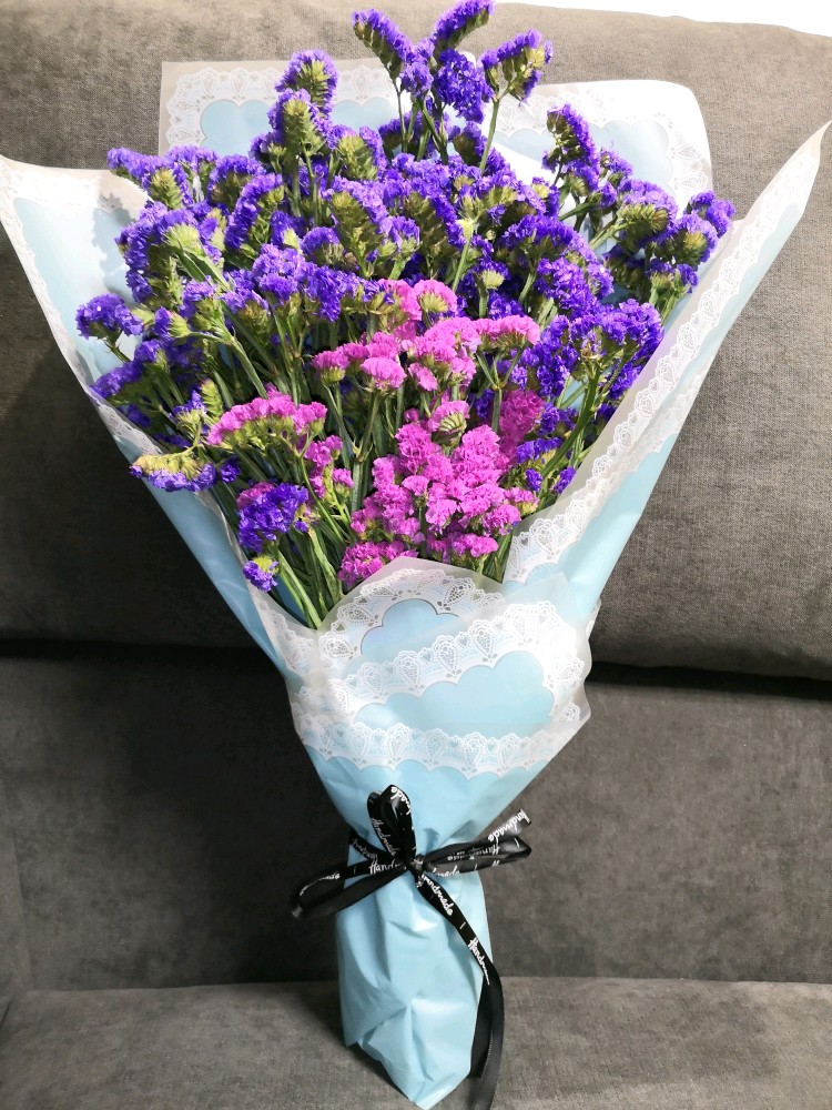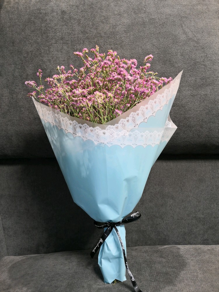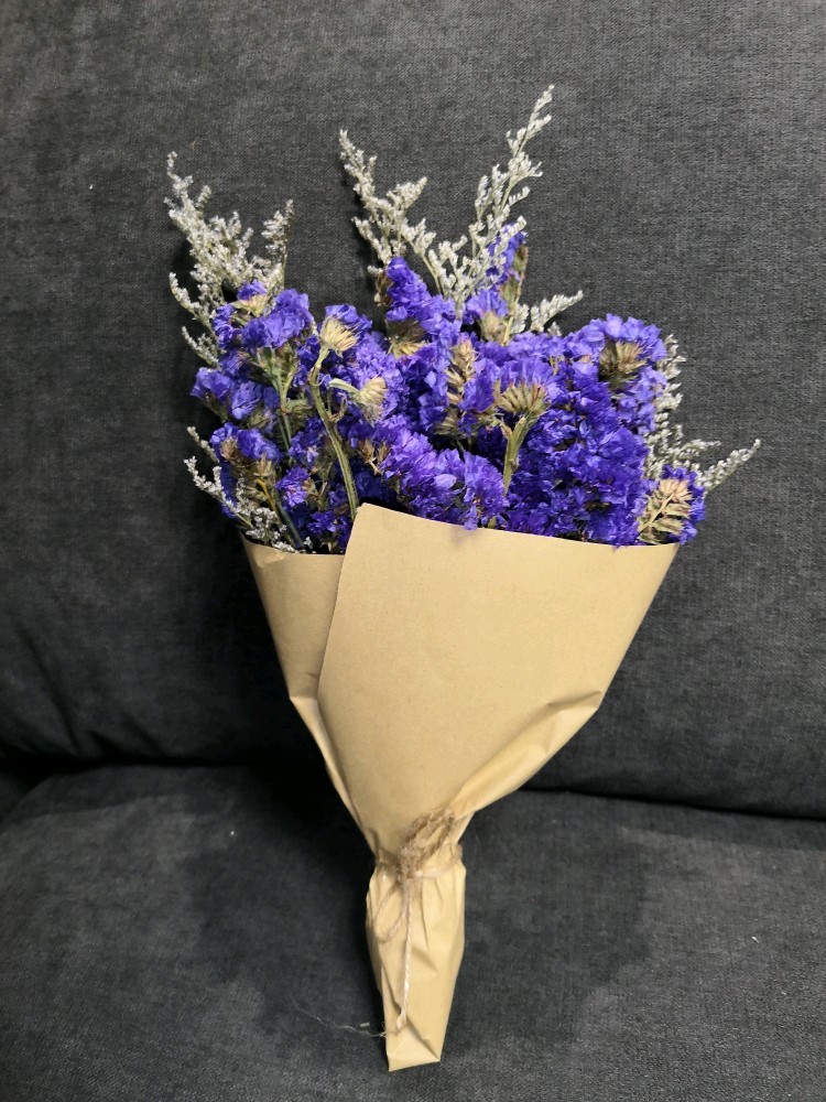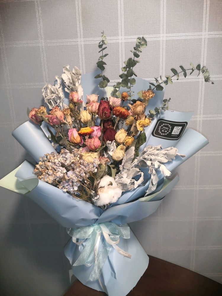 最后我用鲜花花束拆掉的包装纸包了个小干束。