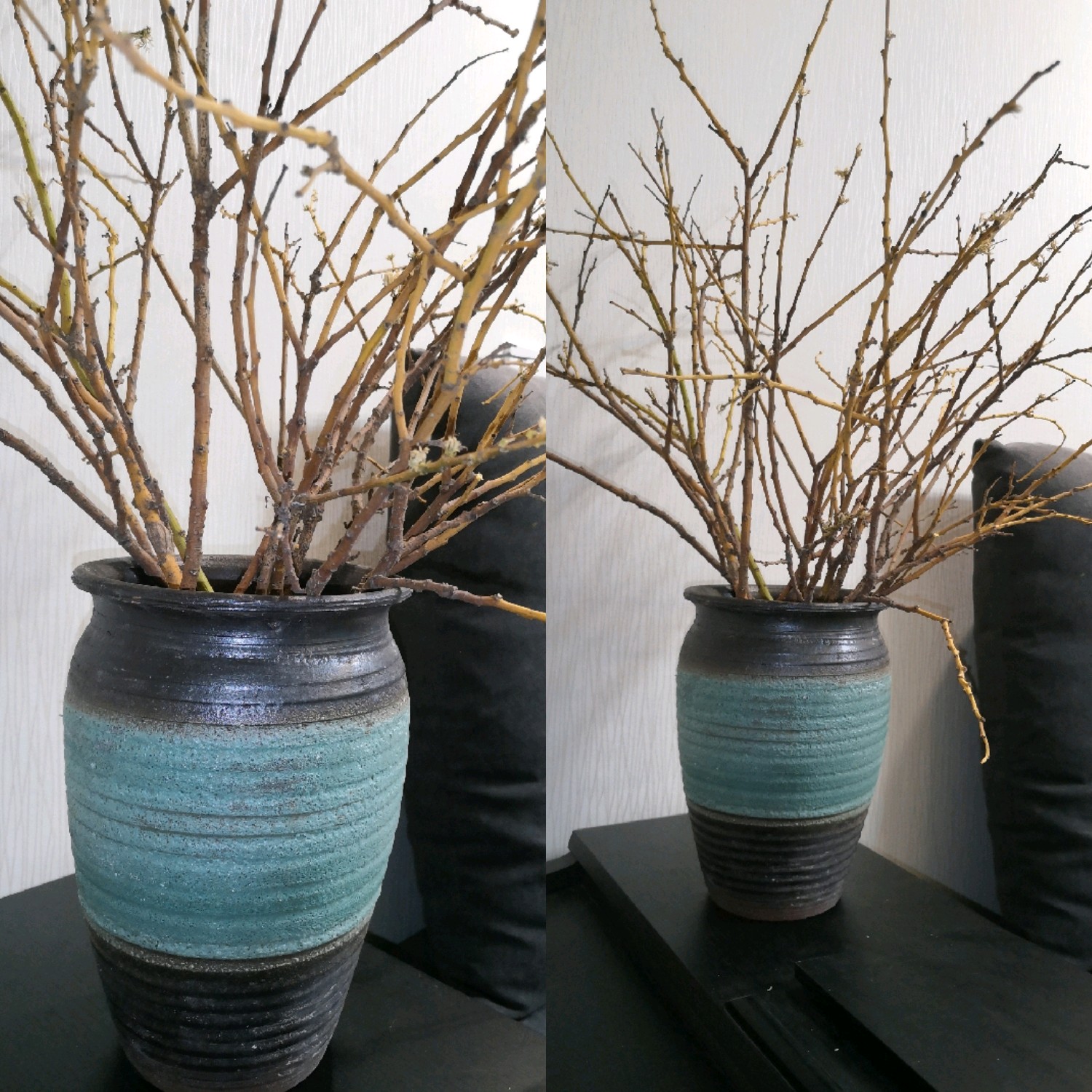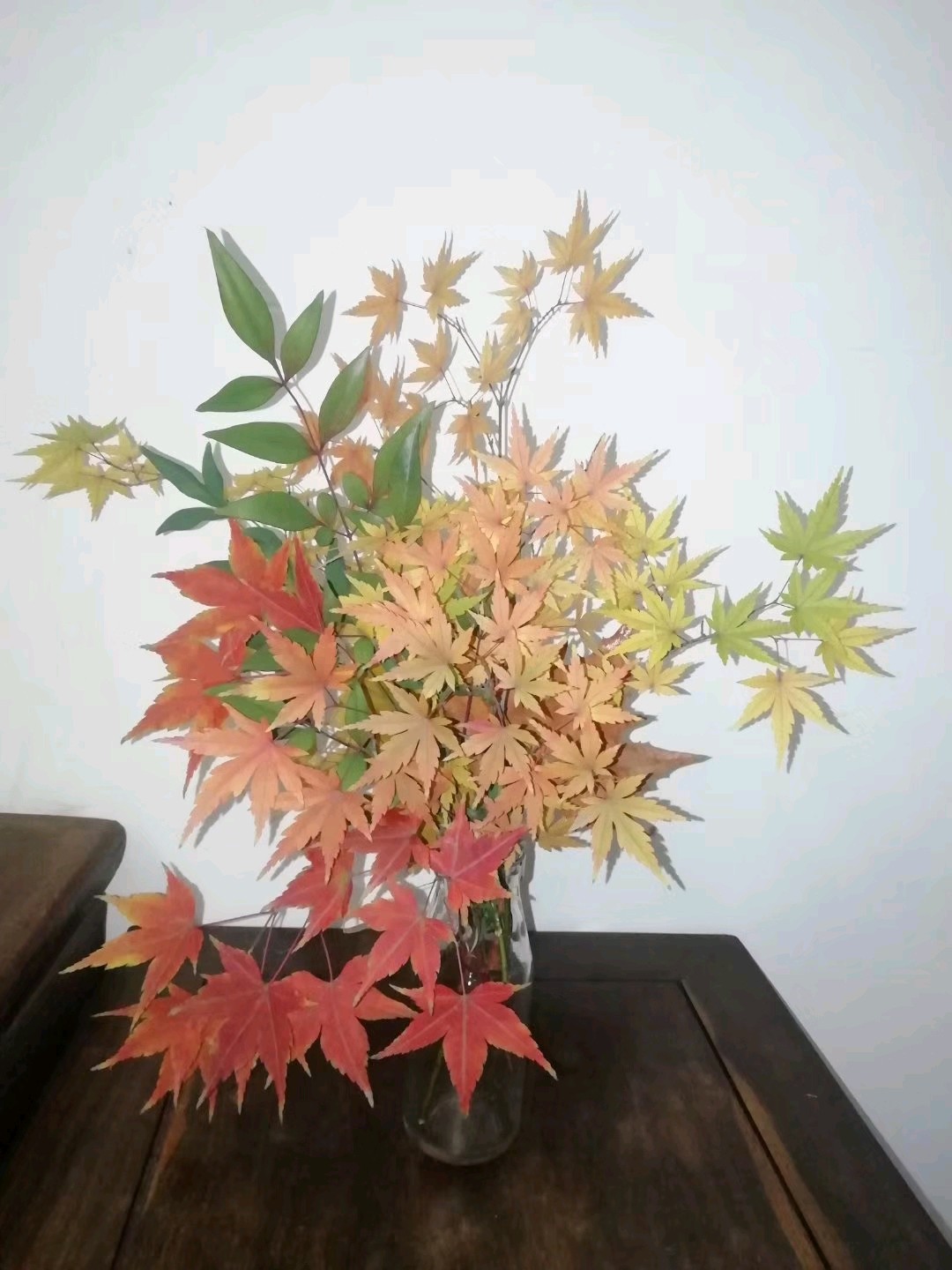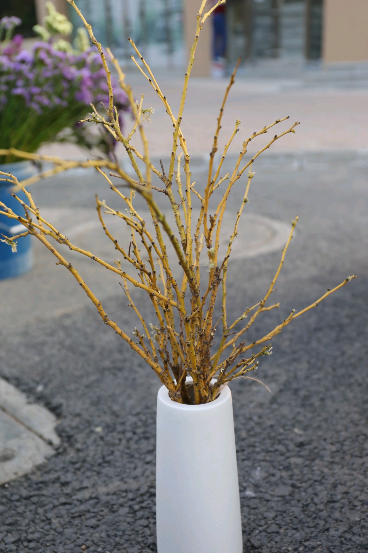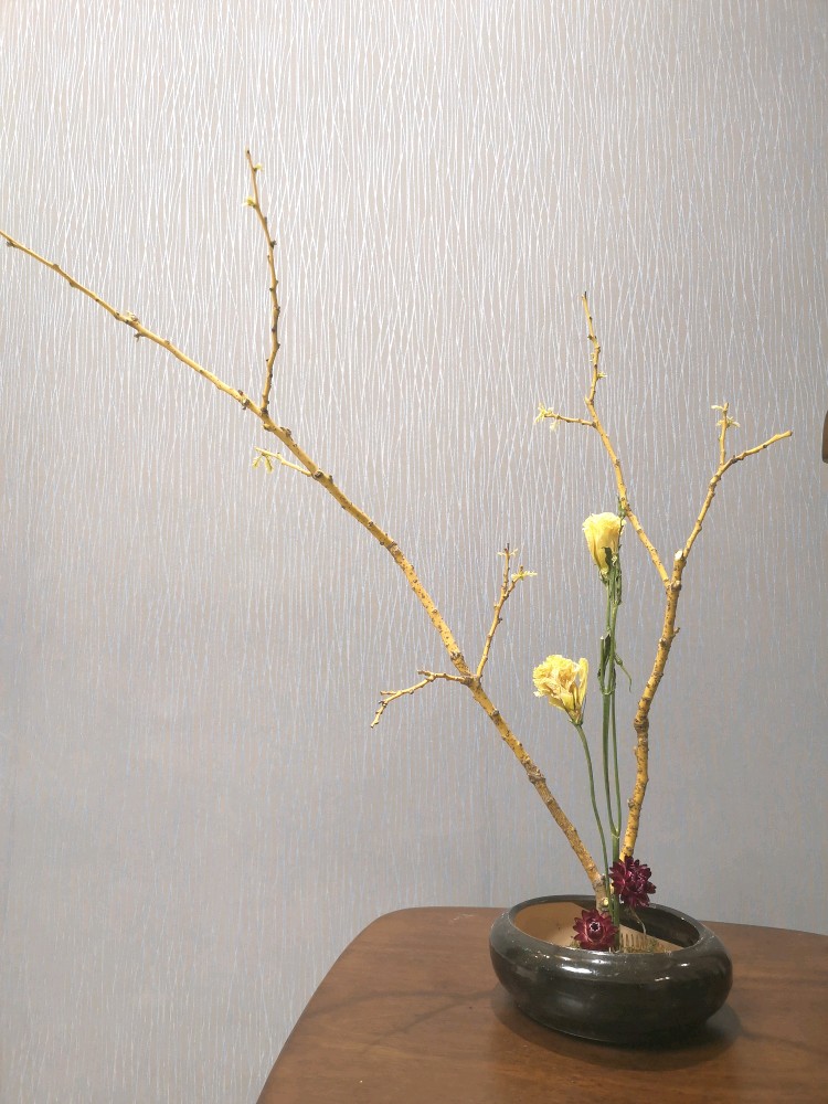 黄金枝+洋桔梗插在剑山里,很有禅意