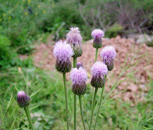 附:【大小蓟区别点】1.大蓟为多年生宿根草本,根簇生,为长纺锤状。小蓟为多年生草本,无纺锤状块根,根细长。2.大蓟高约50-100厘米,小蓟矮一半。3.大蓟叶深裂有刺,小蓟裂浅,刺短4.大蓟两性花,小蓟单性花。