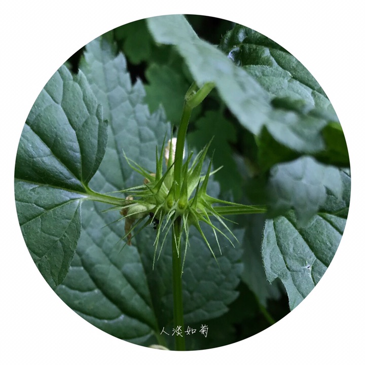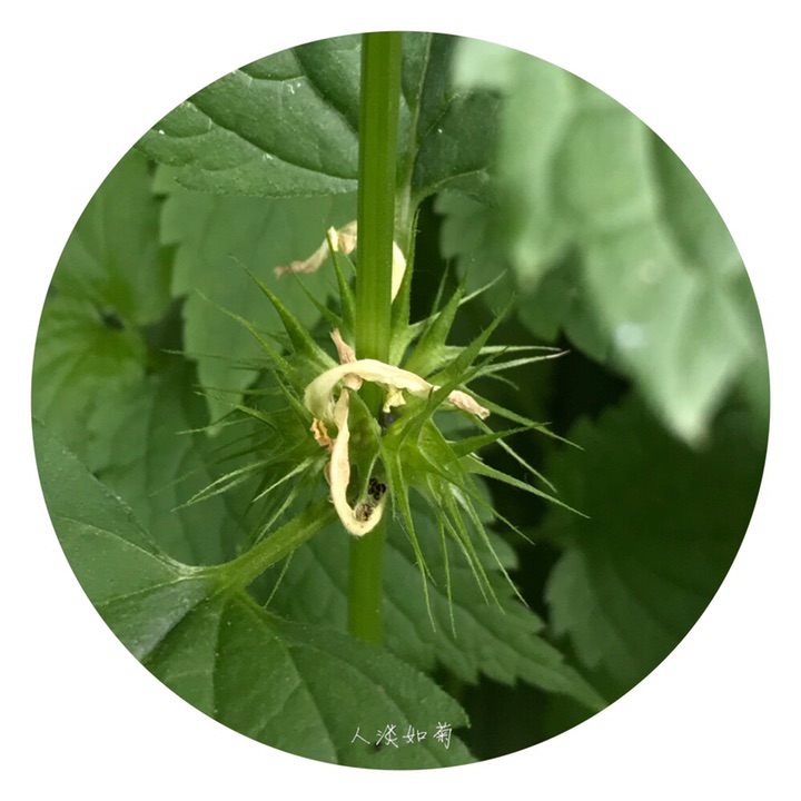 多年生植物;根茎有长地下匍匐枝。茎高达1米,单生,直立,四棱形,具浅槽,中空,几无毛。茎下部的叶卵圆形或心脏形,长4.5-8.5厘米,宽3.5-5厘米,先端尾状渐尖,基部心形,茎上部的叶卵圆状披针形,较茎下部的叶为长而狭,先端长尾状渐尖,边缘有微内弯的牙齿状锯齿,齿尖具胼胝体的小突尖,草质,两面均被短硬毛,叶柄长达7厘米,茎上部的渐变短。轮伞花序4-14花,着生于茎端;苞片狭线形或丝状,长2-3毫米,锐尖,具缘毛。花萼钟形,长约1.5厘米,宽约4毫米,外面疏被伏毛,膜质,萼齿披针状钻形,长7-10毫米,具缘毛。花冠白或浅黄色,长约2厘米,冠筒基部直径2毫米,稍上方呈囊状膨大,筒口宽至6毫米,外面在上部被疏硬毛或近绒毛状毛被,余部几无毛,内面冠筒近基部有毛环,冠檐二唇形,上唇直立,倒卵圆形或长圆形,长约1.2厘米,先端圆形或微缺,边缘具缘毛及长柔毛,下唇长约6毫米,3裂,中裂片倒肾形,先端深凹,基部急收缩,侧裂片宽,浅圆裂片状,长约0.5毫米,先端有针状小齿。雄蕊花丝扁平,被微柔毛,彼此粘连,花药深紫色,被柔毛。花柱丝状,先端近相等的2浅裂。花盘杯状。子房裂片长圆形,无毛。小坚果倒卵圆形,先端截形,基部渐狭,长约3毫米,直径1.8毫米,淡褐色。花期4-6月,果期7-8月。