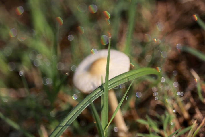 小草上晶莹的露珠 晨曦中熠熠闪光