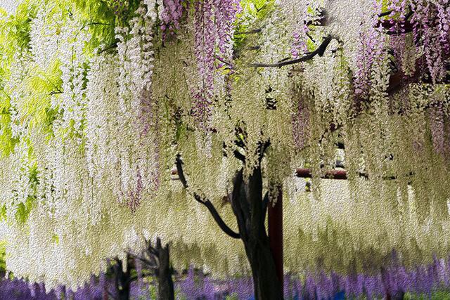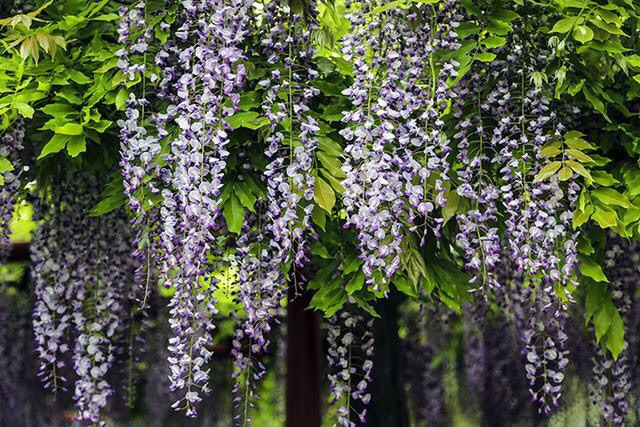 紫藤,(学名:Wisteria sinensis),别名藤萝、朱藤、黄环。属豆科、紫藤属,一种落叶攀援缠绕性大藤本植物。干皮深灰色,不裂;春季开花,青紫色蝶形花冠,花紫色或深紫色,十分美丽。紫藤为暖带及温带植物,对生长环境的适应性强。产河北以南黄河长江流域及陕西、河南、广西、贵州、云南。民间紫色花朵或水焯凉拌,或者裹面油炸,制作“紫萝饼”、“紫萝糕”等风味面食。