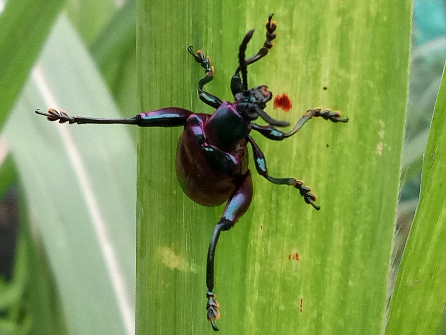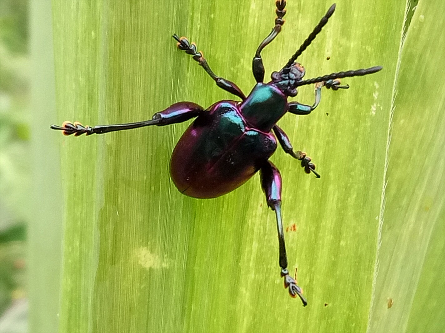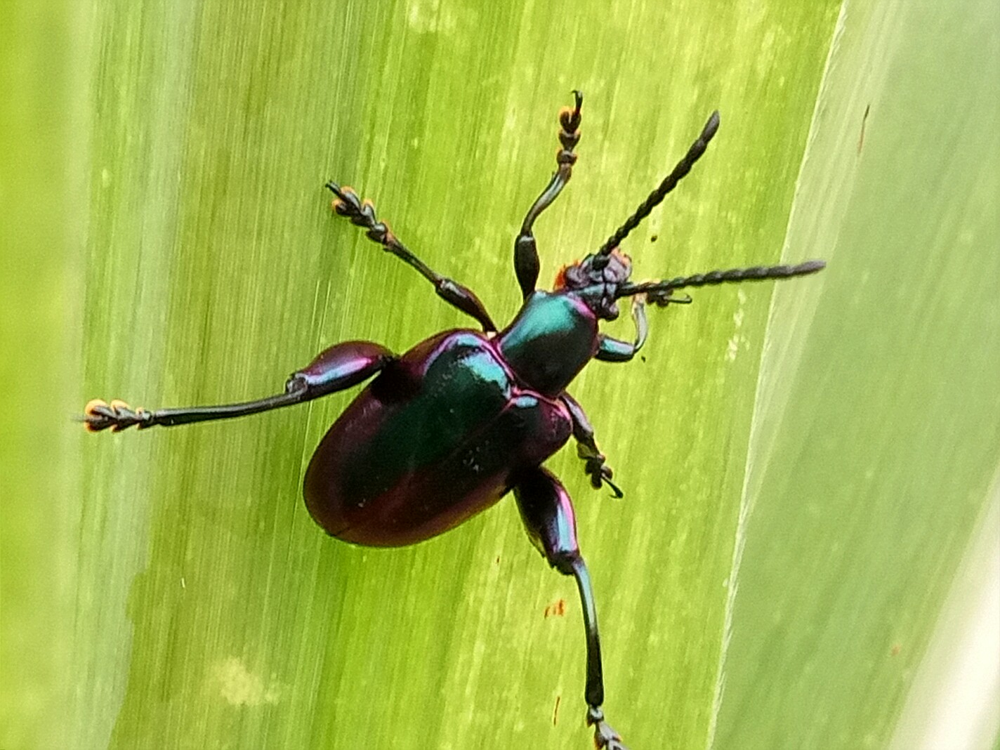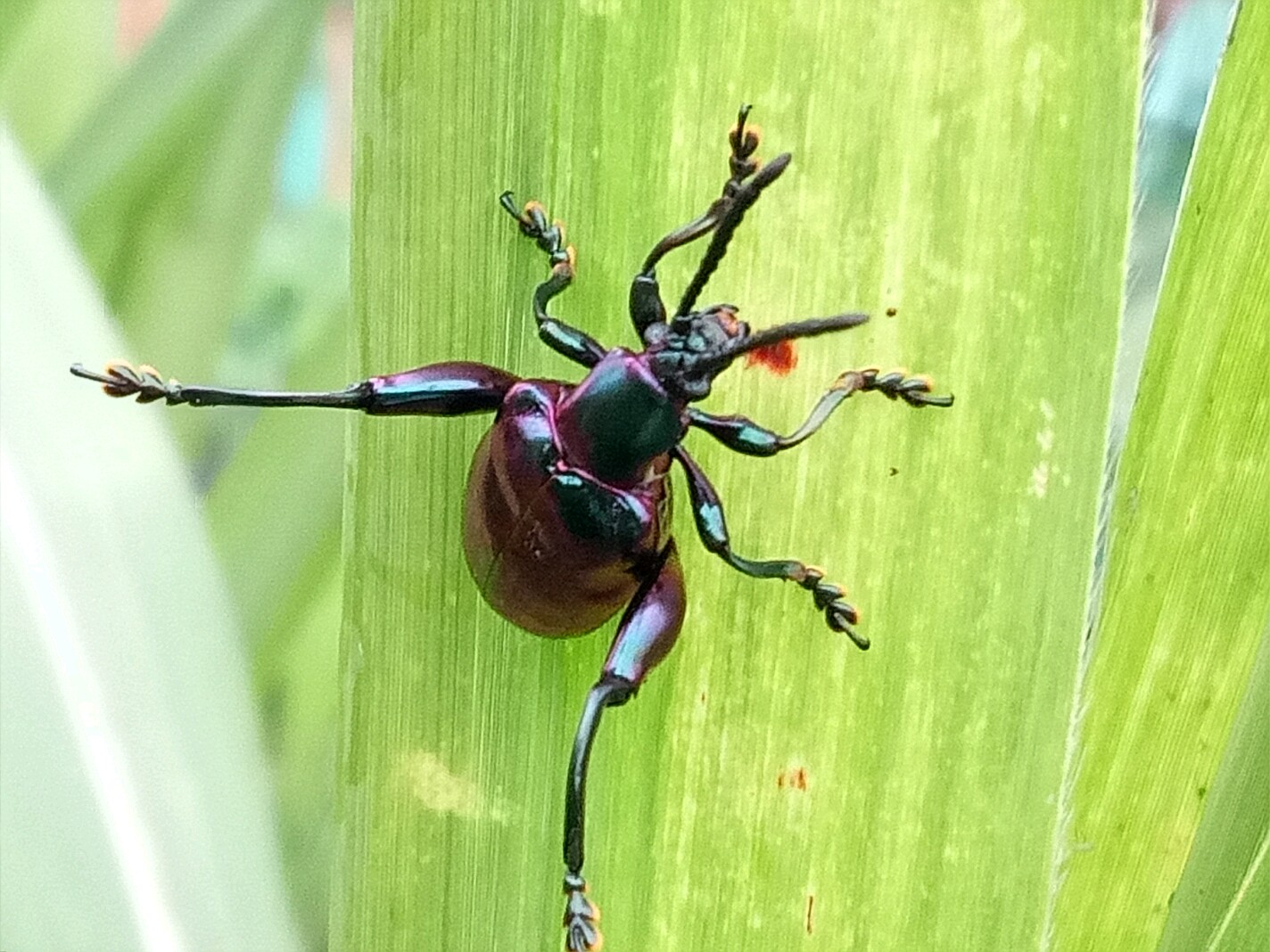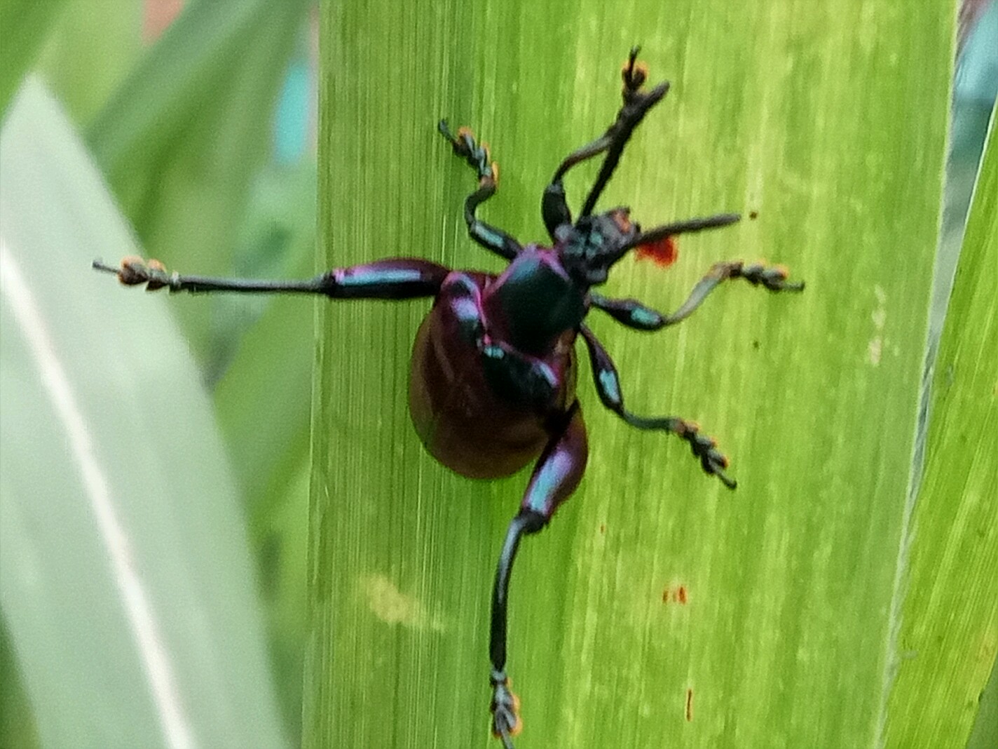 别人喜欢晒花,我却爱晒虫,走不同常人的路。图为琉璃粗腿金花虫。