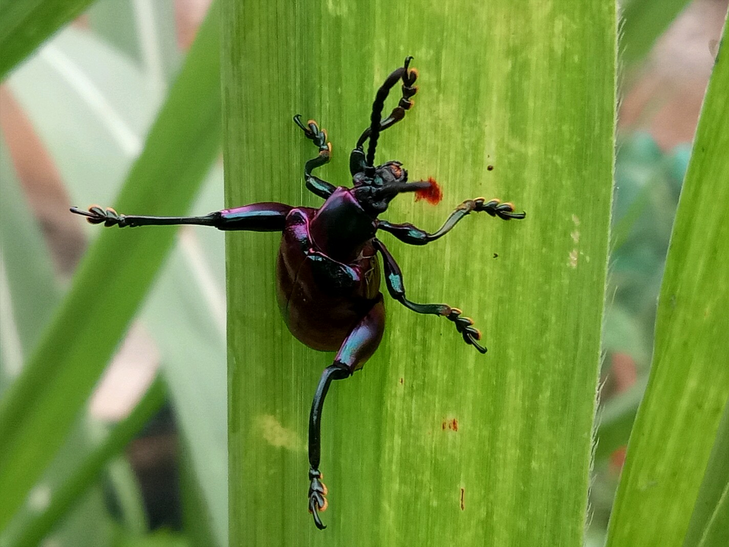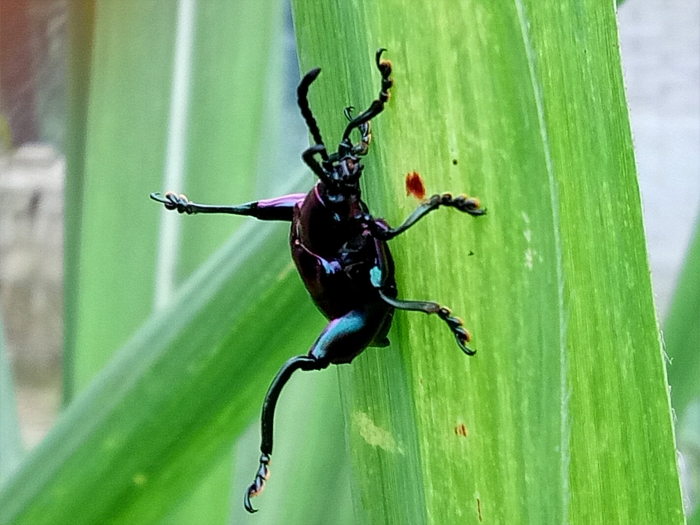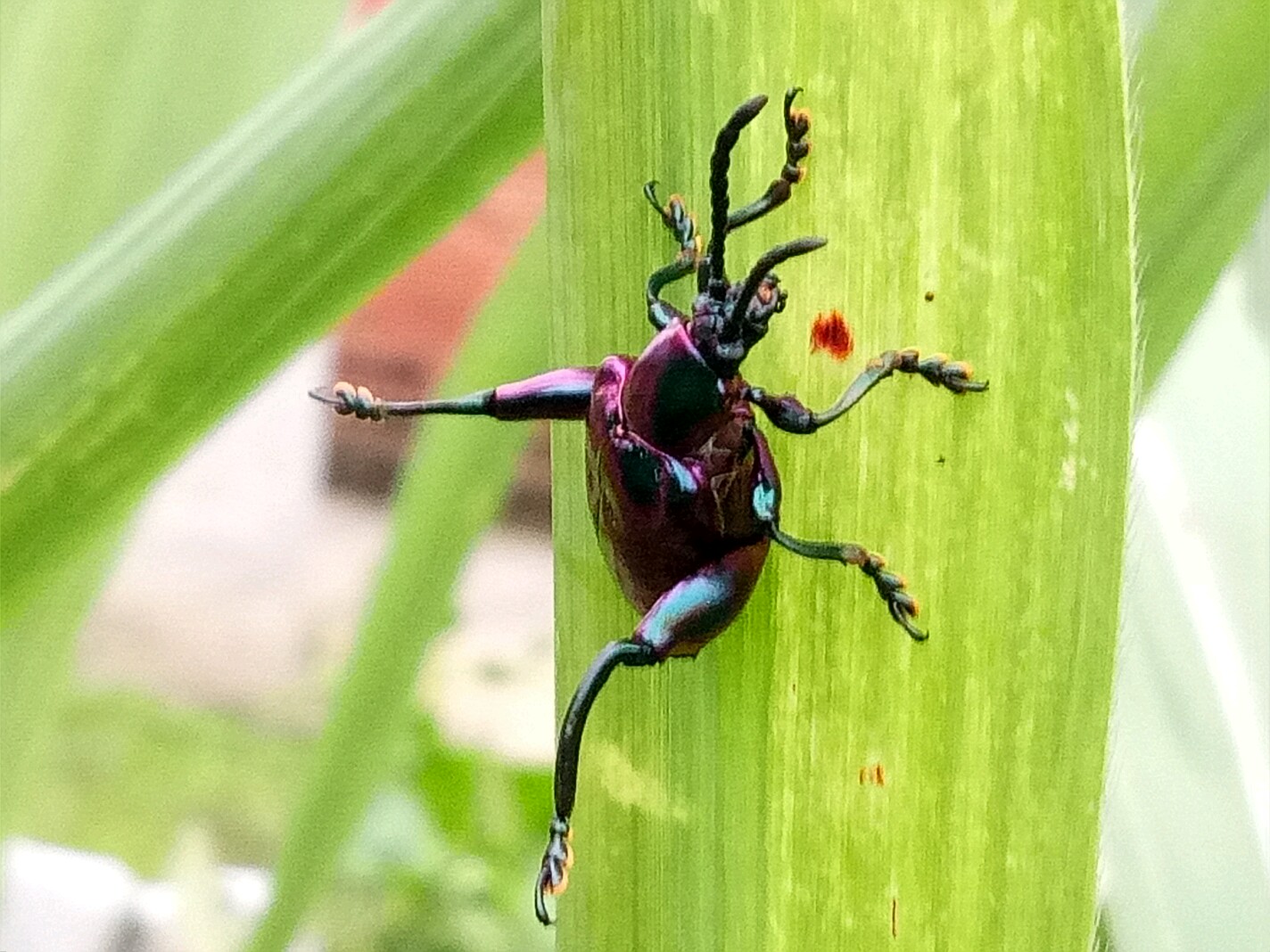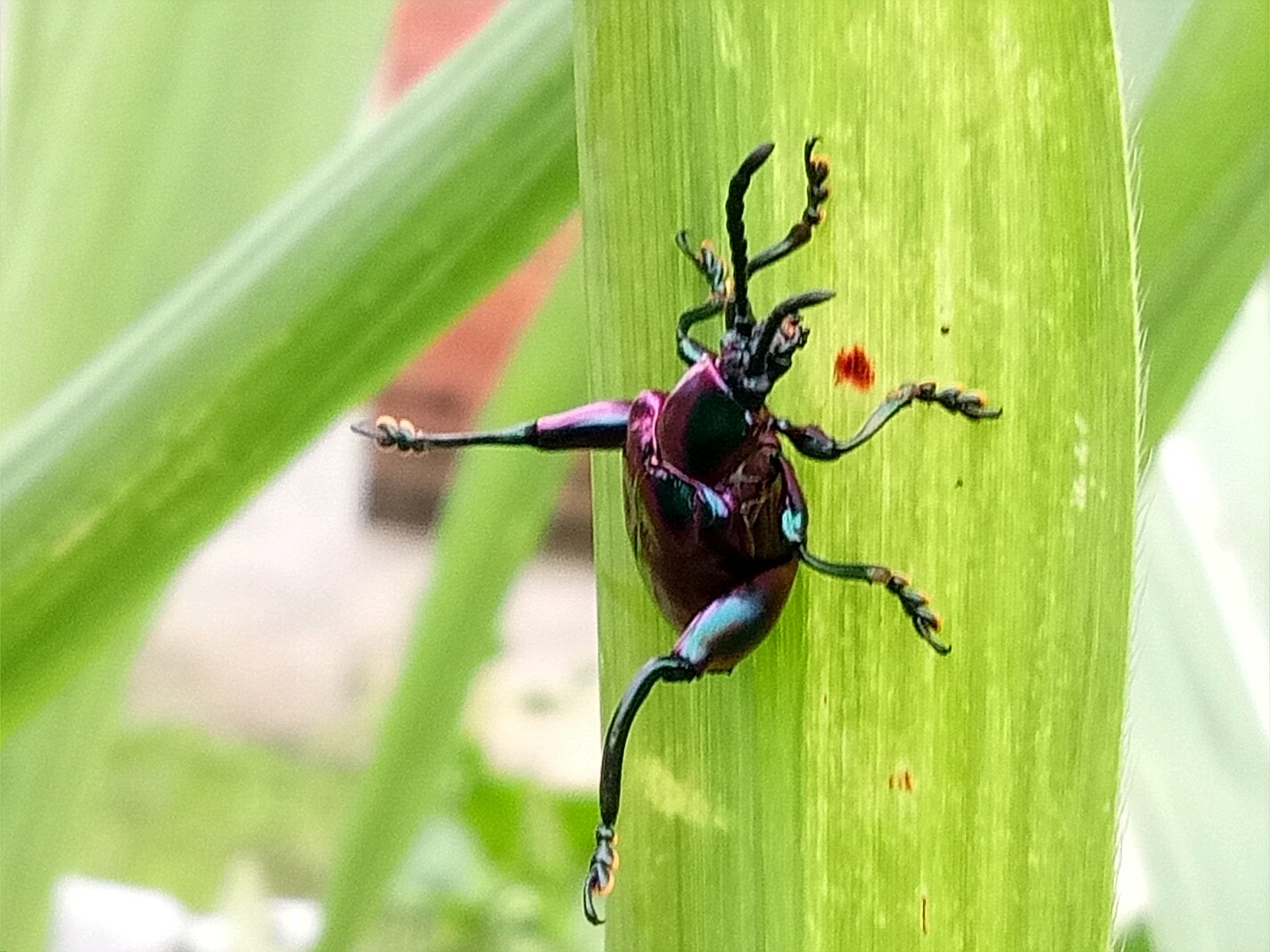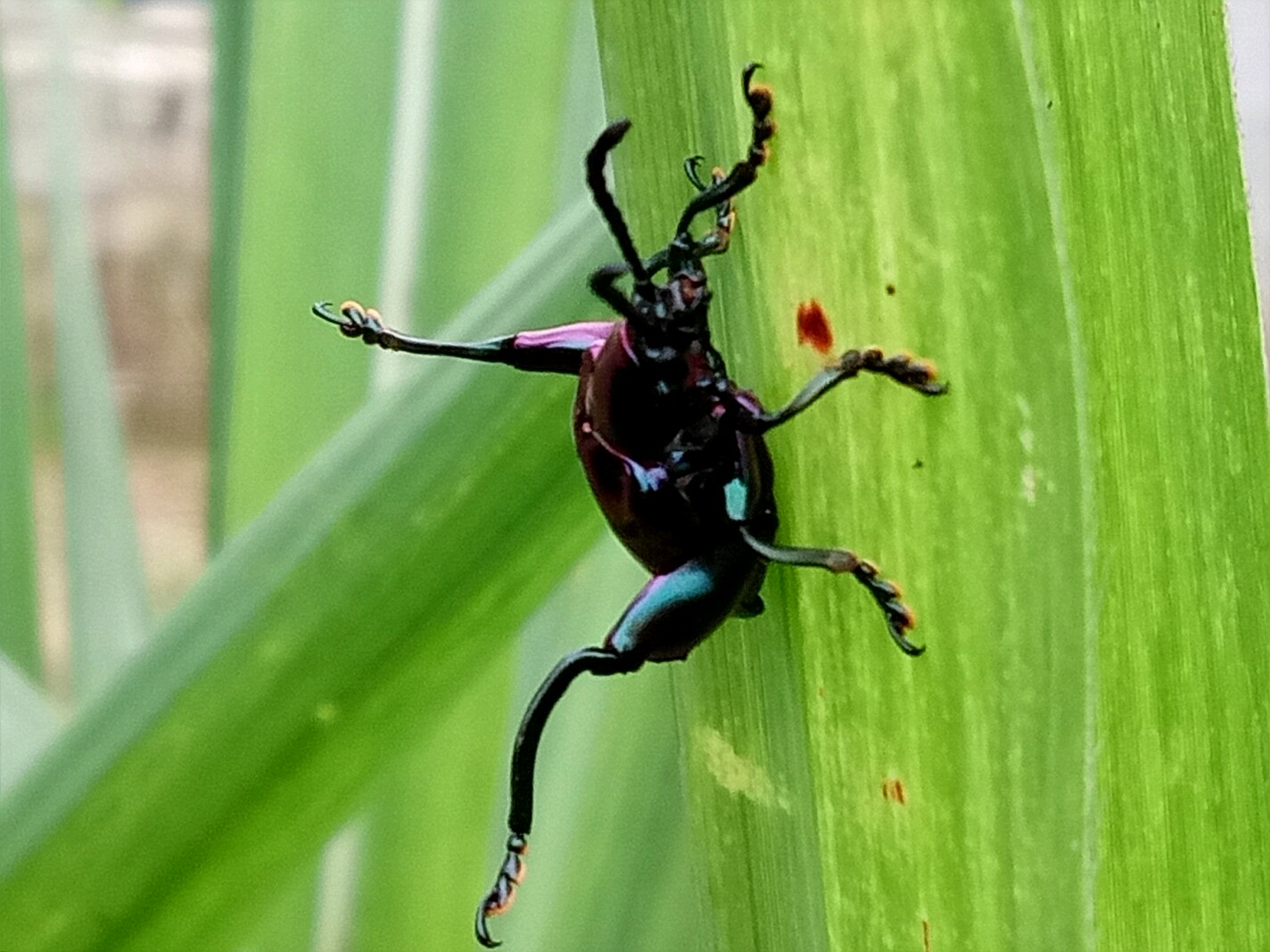 别人喜欢晒花,我却爱晒虫,走不同常人的路。图为琉璃粗腿金花虫。