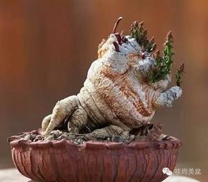 或称狗奴子麒麟。大戟科多肉植物。具有灰褐色群生的薯状茎,形状稀奇古怪,顶端生灰绿色分枝,四棱形,棱峰生有3枚褐色针刺,长的茎,常呈下垂状。