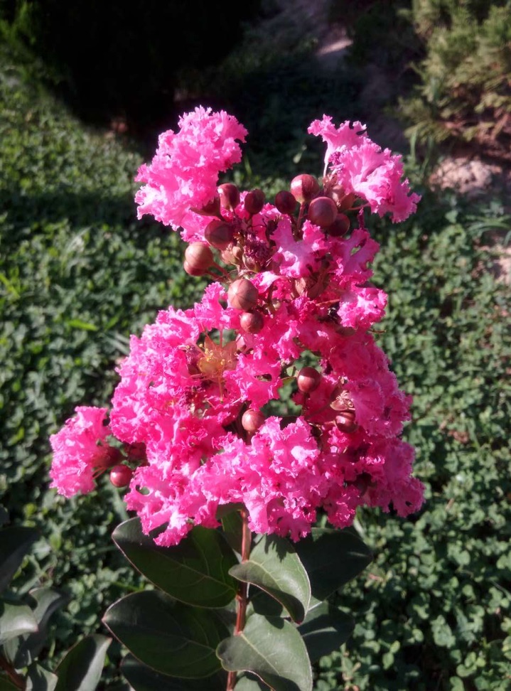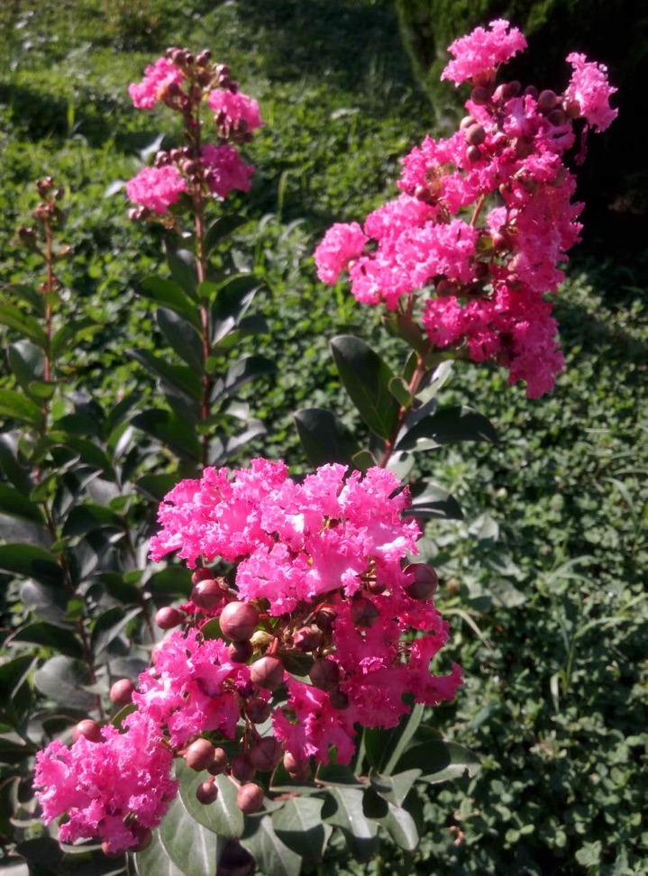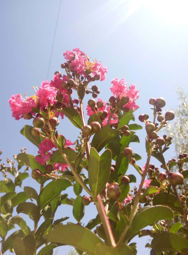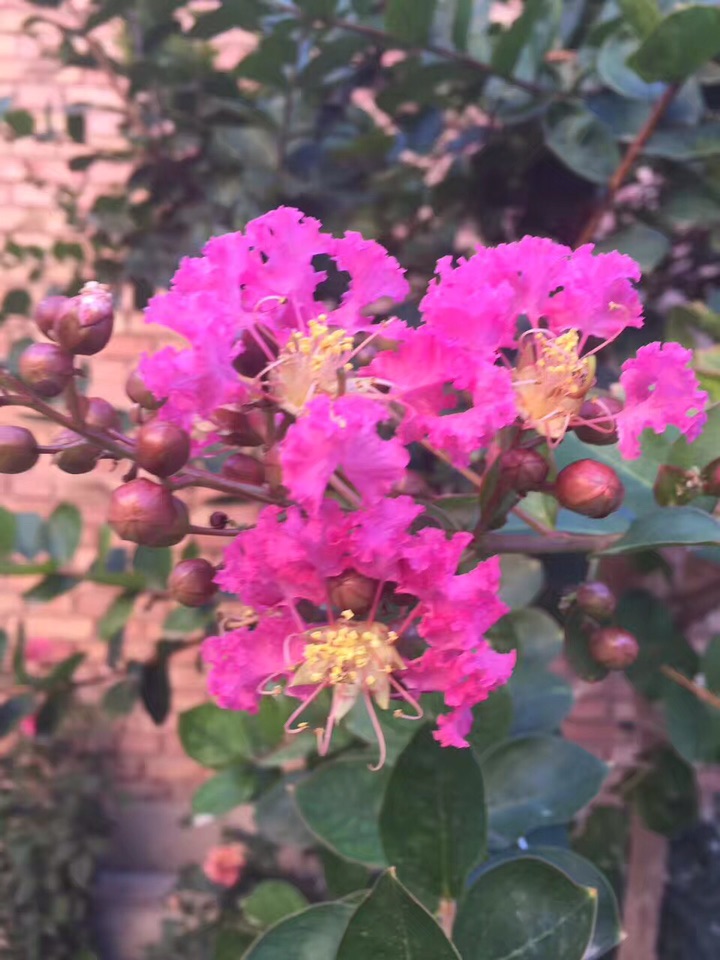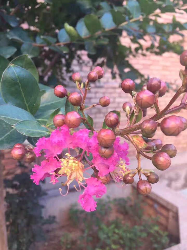 夏花多半绚烂短暂,紫薇确实相当具有持久力的一种,理论上来说,自五月到九月都是紫薇的花期,故而有了百日红的别名。以我的经验看八月是紫薇最好的季节,完全担得起(广群芳谱)里“每微风至,妖娇颤动,舞艳惊鸿,未足为喻”的说法。一场雨过后,花枝披离,满地五彩斑斓的落花琐碎起舞弄清影,方才是贵族式宠辱不惊应对自如的光景。附杨万里诗