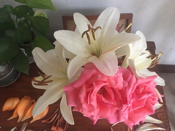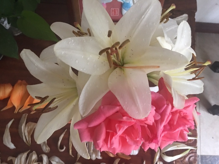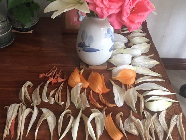 剪掉百合插瓶,掉下的叶子自然干燥煲汤用