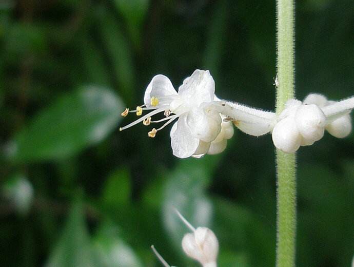 杜若,(拉丁文名:Pollia japonica Thunb.),别名:阿金够;白接骨丹;白叶菜;包谷七;地藕;羊藿七;竹叶莲;竹叶知母,鸭跖草科 、杜若属多年生直立或上升草本。花红色,果圆球形,直径5~7毫米,成熟时暗蓝色。