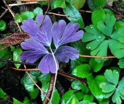 天葵〔学名:Semiaquilegia adoxoides (DC.) Makino〕是毛茛科天葵属多年生小草本植物,块根长达2厘米,外皮棕黑色。茎高可达32厘米,基生叶为掌状三出复叶;叶片轮廓卵圆形至肾形,小叶扇状菱形或倒卵状菱形,两面均无毛;叶柄长可达12厘米,茎生叶与基生叶相似,惟较小。花小,苞片小,倒披针形至倒卵圆形,花梗纤细,萼片白色,常带淡紫色,狭椭圆形,花瓣匙形,与花丝近等长;蓇葖卵状长椭圆形,表面具凸起的横向脉纹,种子卵状椭圆形,3-4月开花,4-5月结果。