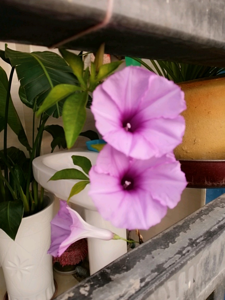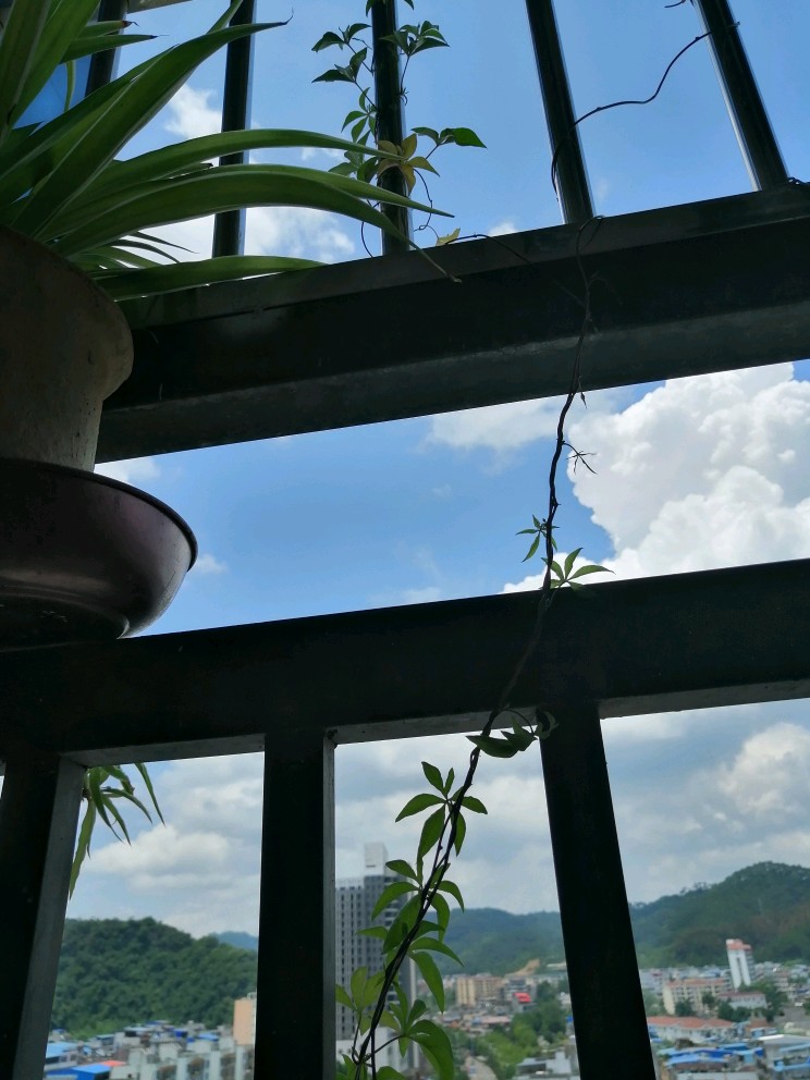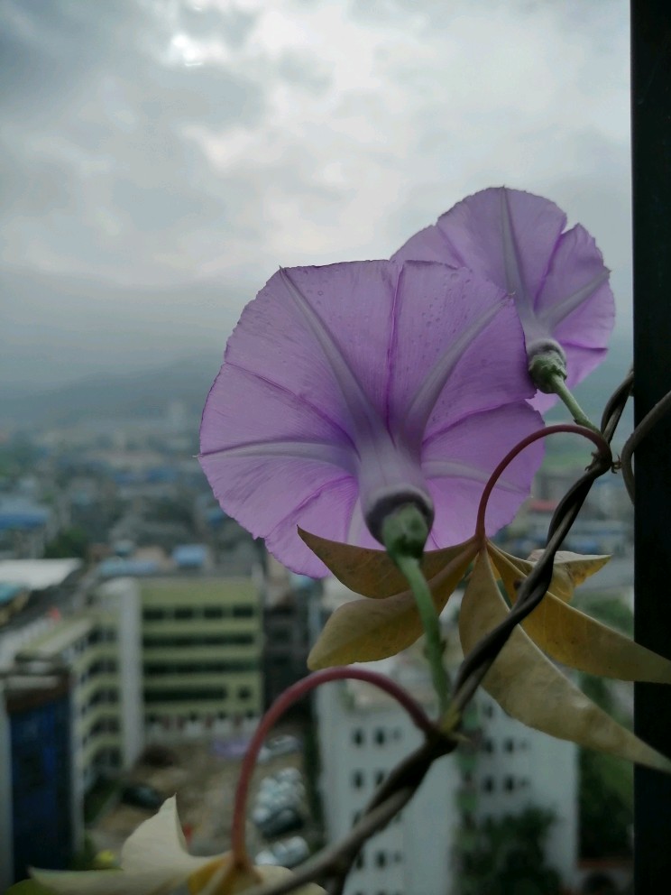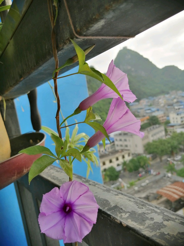 牵牛花一边迈开优雅的绿五爪,沿着阳台的护栏,顽强往上攀爬;一边张开美丽的喇叭,为自己鼓劲呐喊:“努力向上,追逐蓝天与白云,拥抱阳光与雨露。”