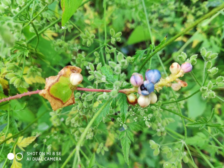 你知道它名字的来源吗?感觉还有点意思,说是有人被毒蛇咬了,要死了,于是同伴就回家去拆了门板过来,准备把他抬回去,但是没想到他用一种植物的茎叶捣烂敷伤口上,竟然好了,于是,他自己把门板扛了回去。所以,这种能治疗蛇毒的植物被叫做扛板归或杠板归。