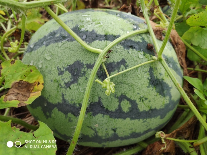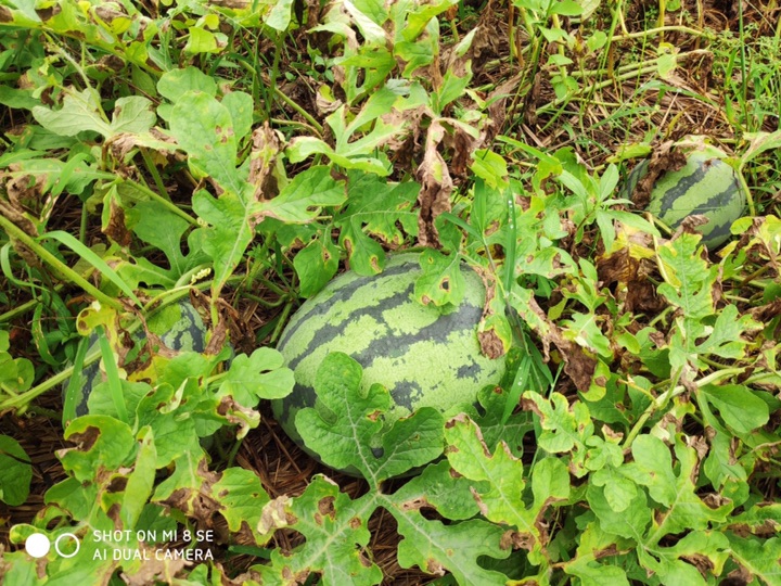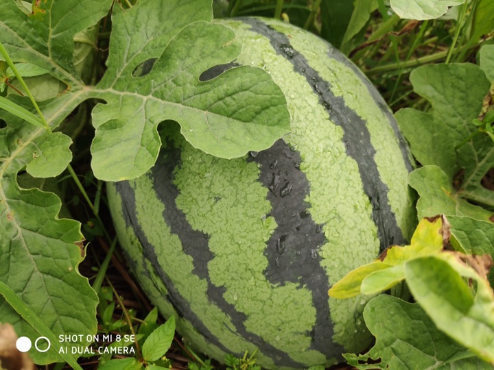 家里的西瓜又丰收了,总共也就种了32棵瓜苗,现在地里能看到的大西瓜已经有55个了,别人家的西瓜基本木有,我家的个个均匀老爸的种瓜技术杠杠滴!