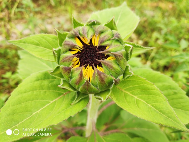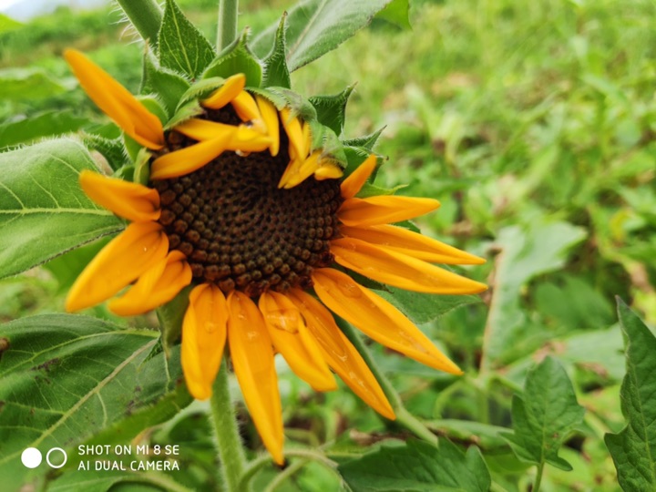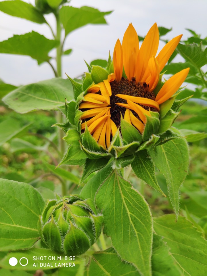 这应该是观赏性的向日葵,种子是去年我从北京带回来的,老爸也无心去种,就随意的洒在了西瓜地里 ,然后长出了这么三棵苗苗,现在也已初绽花蕾