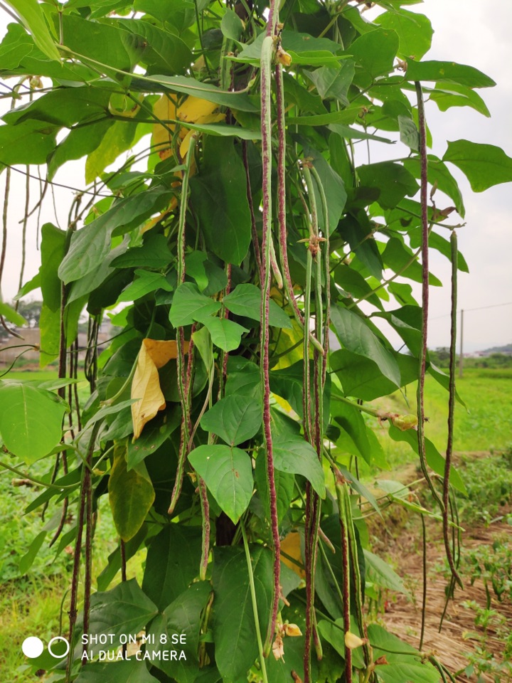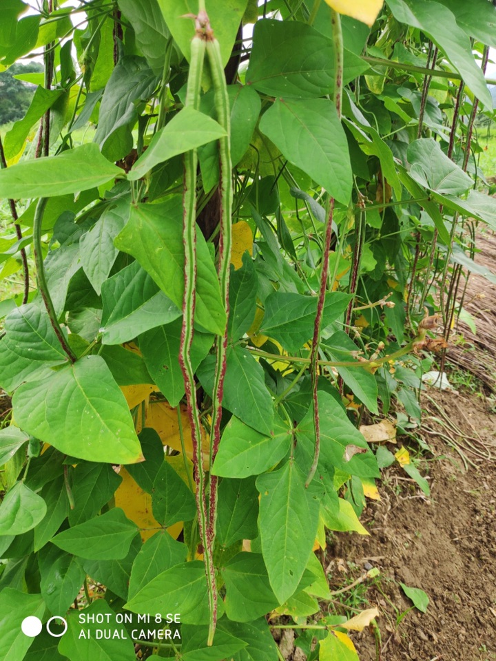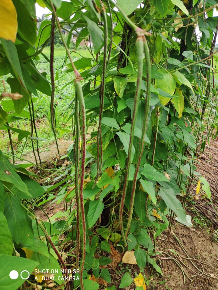 这是今年老爸新种的,种子是问村里一位卖菜的大爷拿的,统共种了4棵,有一棵还是后面补的现在才刚结豆角,就这么几株豆角,挂果之丰盛,吃都吃不完