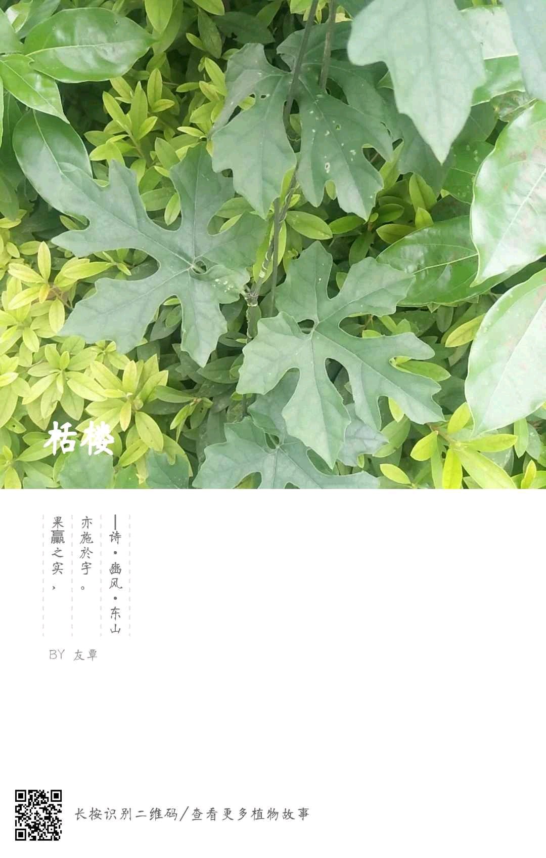 妈妈说:栝楼的叶子可以做野菜、栝楼的果实像极了未长开的小小西瓜。在小时候,妈妈曾采摘许多栝楼嫩叶炒着吃,我们也曾经摘许多的栝楼果实当玩具耍。