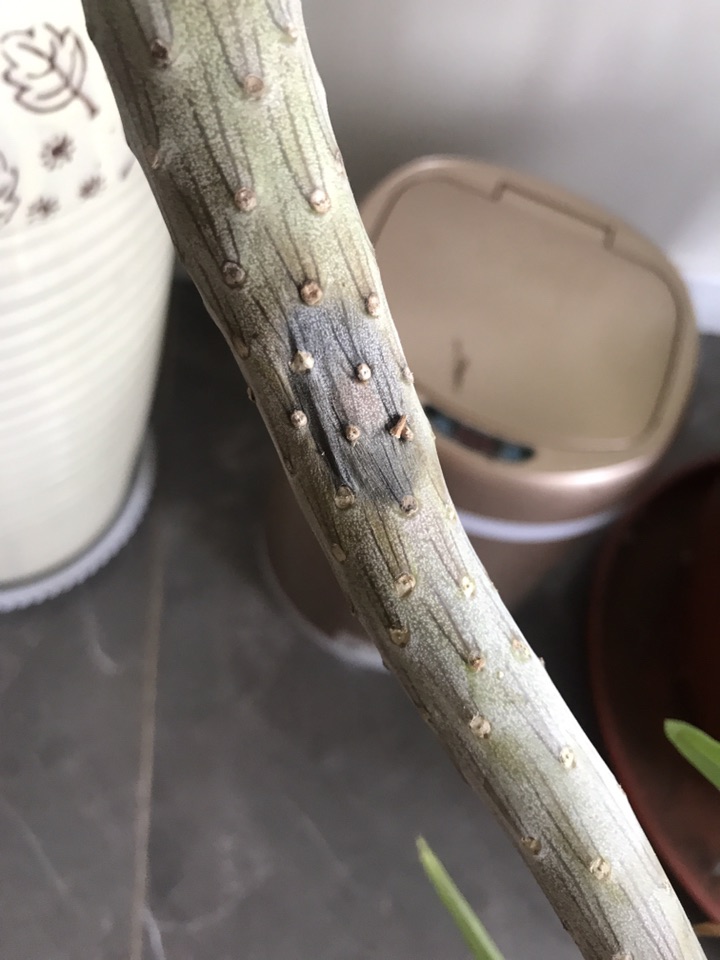 干瘪发黑 杆子也站不起来了 刚挖开 根部完好 没有坏死的迹象 前段时间遭介壳虫害 喷了些食醋 是不是这个原因啊 求大神指教