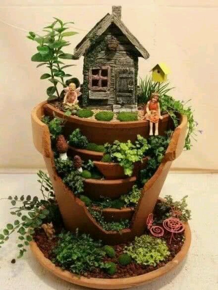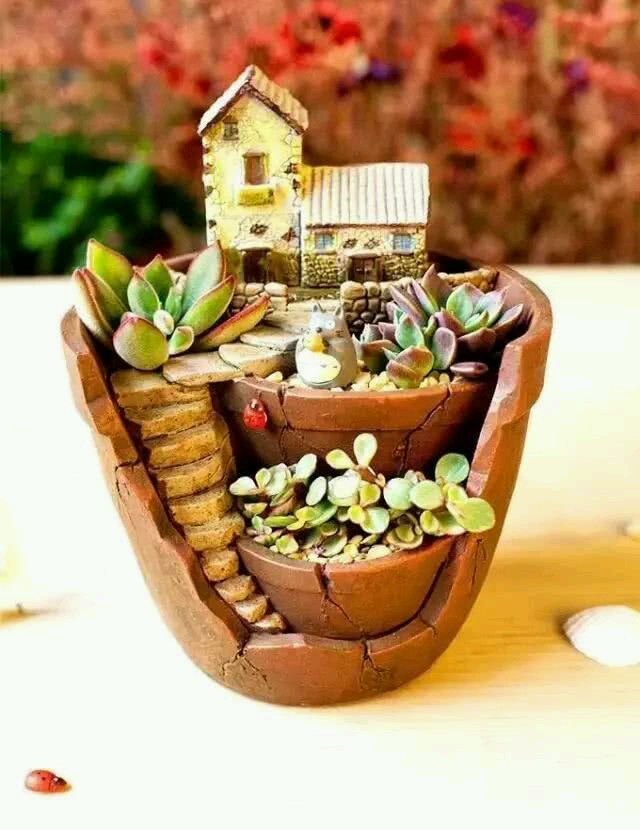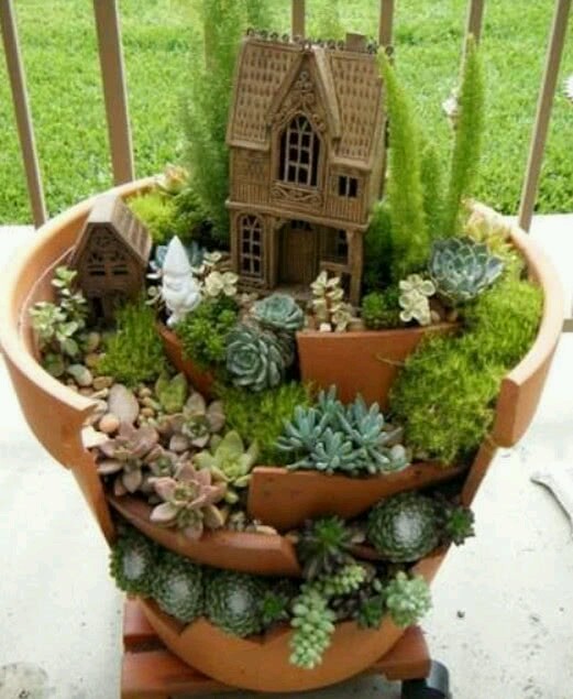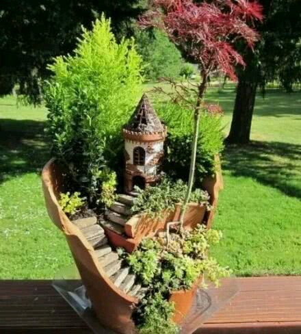花盆碎了怎么办?看这里!碎盆变身小花园~