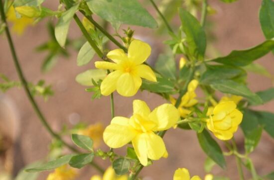 探春花(学名:Jasminum floridum Bunge)是木犀科素馨属植物,直立或攀援半常绿灌木,小枝褐色或黄绿色,当年生枝草绿色,扭曲,四棱,无毛。叶互生,复叶,叶片和小叶片上面光亮,干时常具横皱纹,两面无毛,稀沿中脉被微柔毛;小叶片卵形、卵状椭圆形至椭圆形,稀倒卵形或近圆形,果长圆形或球形,成熟时呈黑色。