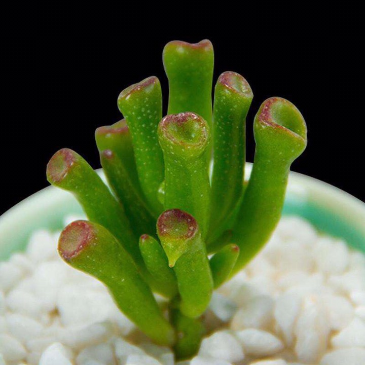 筒叶花月是以观叶为主的多肉植物,叶片翠绿,四季常青,多作办公室、居室、 阳台的摆件,也有少量用来制作多肉盆景,是一款很普及的多肉精品。