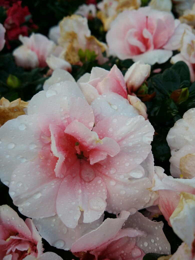 粉红色的花朵和绿色的叶子,加上水珠,真美呀。🌸🌸