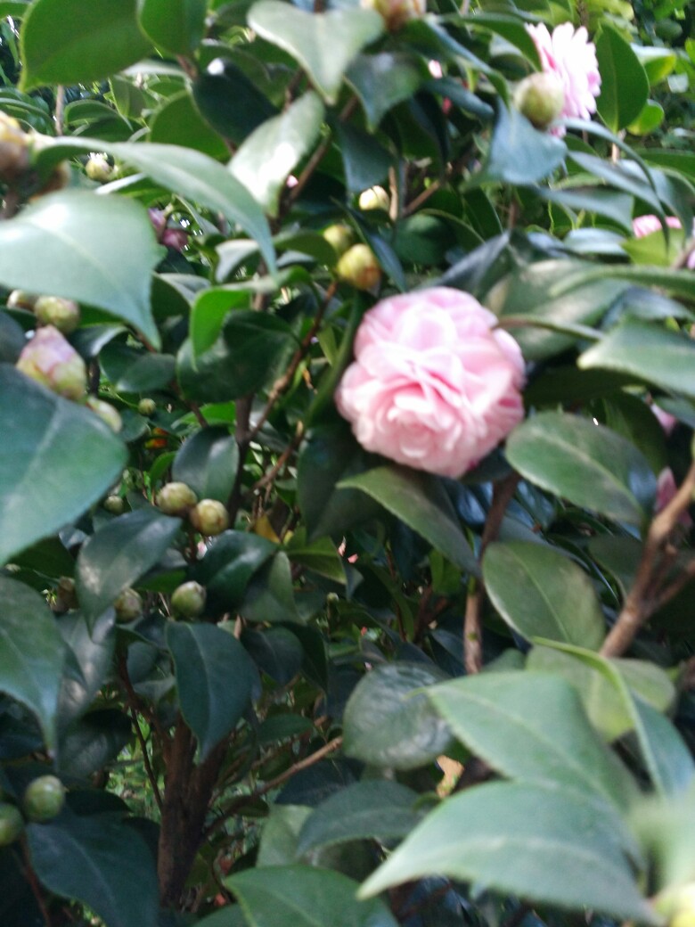 粉红色的花,多多的花瓣,一片一片的叶子,美。🌺🌺