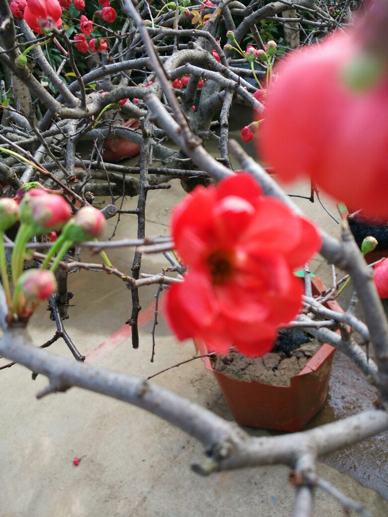 红色的花朵,绿色的叶子,加上树枝,美美哒。🌷🌷