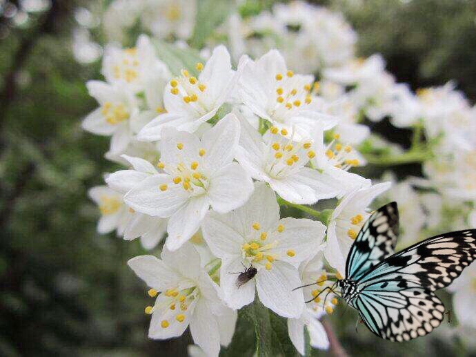 初夏白花满树,洁净素雅,其重瓣变种更加美丽。