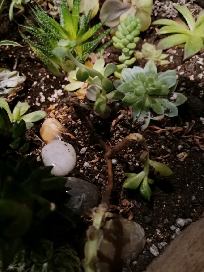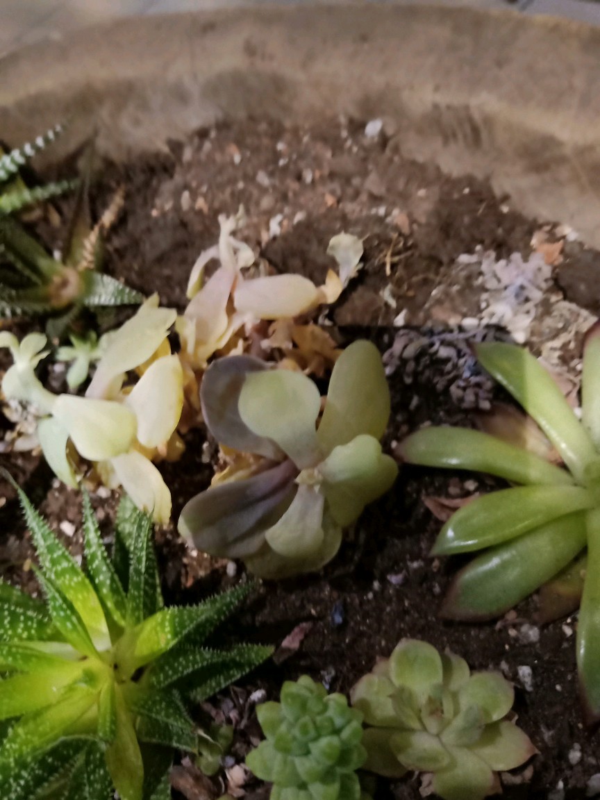 大家看看,餐厅里的多肉好多都死了。