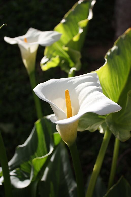马蹄莲,(学名:Zantedeschia aethiopica (L.) Spreng.),是单子叶植物纲、天南星科、马蹄莲属多年生粗壮草本。具块茎,并容易分蘖形成丛生植物。叶基生,叶下部具鞘;叶片较厚,绿色,心状箭形或箭形,先端锐尖、渐尖或具尾状尖头,基部心形或戟形。喜疏松肥沃、腐殖质丰富的粘壤土。