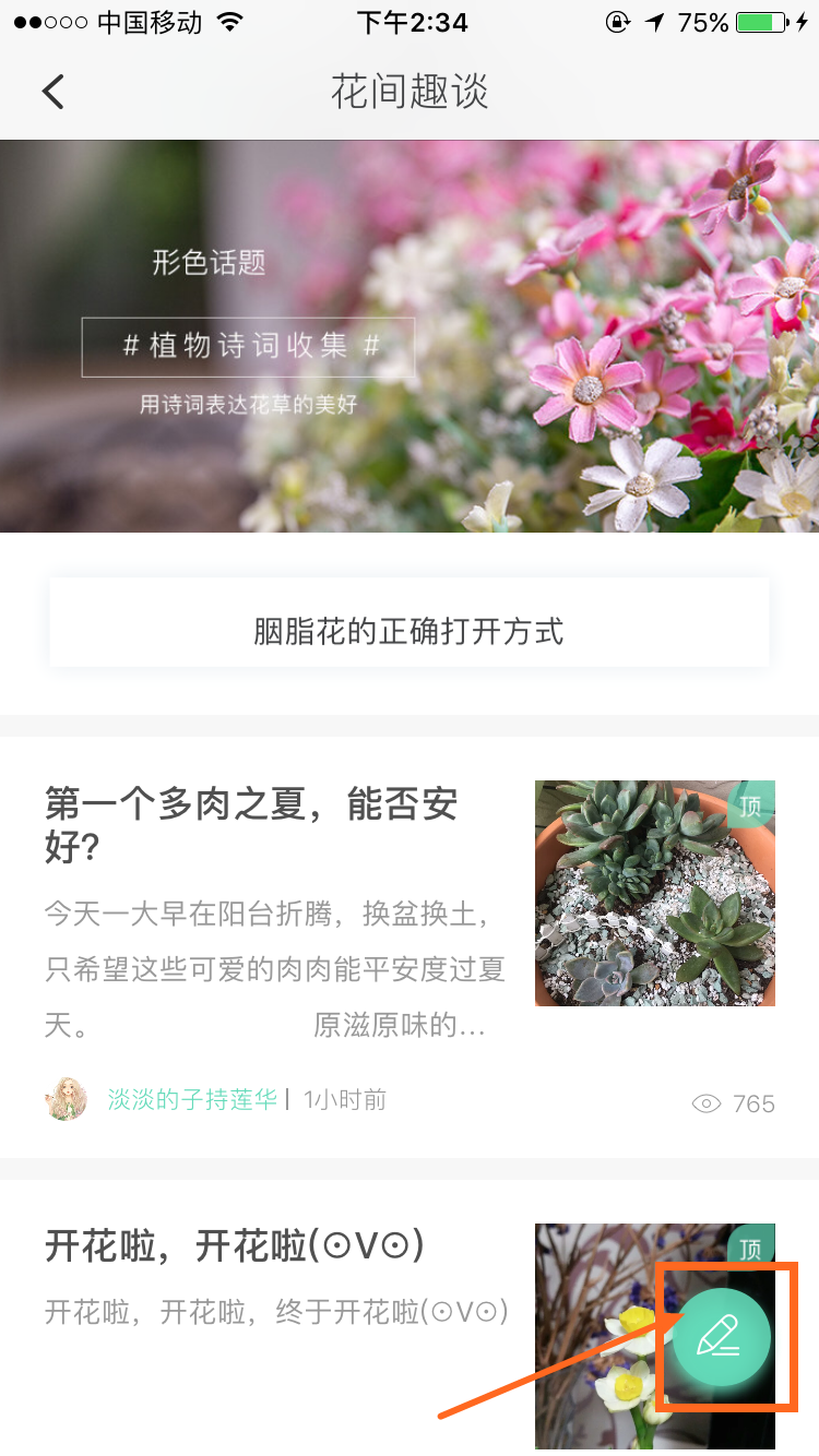 现在返回话题页面,在下方点击一下小铅笔,发个简单的话题试试吧!