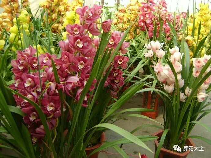 大花蕙兰,花色热烈浓艳,每个花枝上近二十个花蕾,渐次向上盛开,所以大花蕙兰又有步步高升的意思,新的一年,心想事成,步步高升,一定要买一盆大花蕙兰啊。