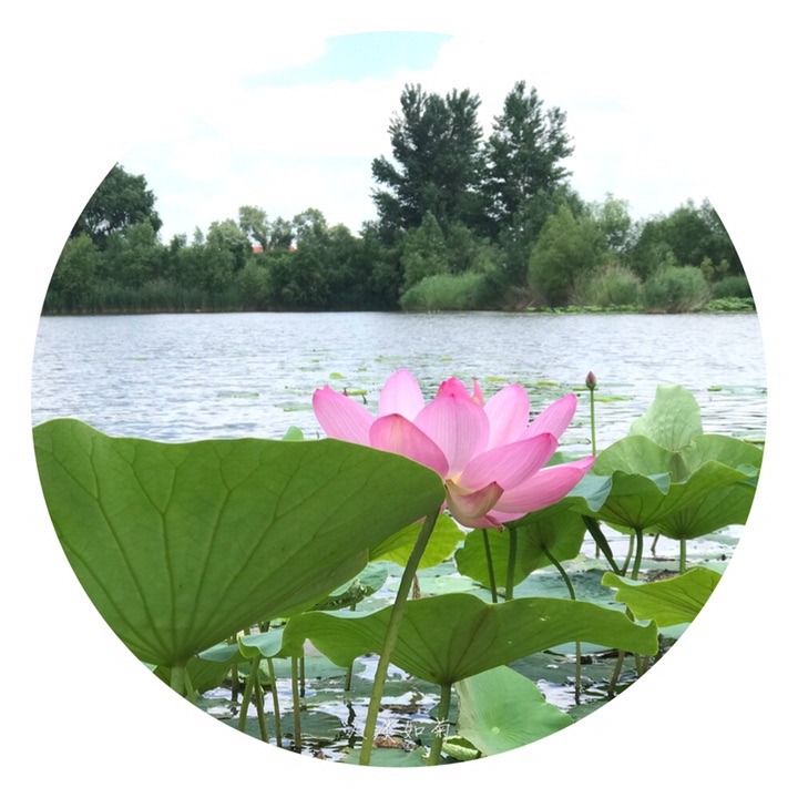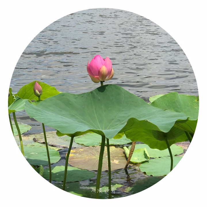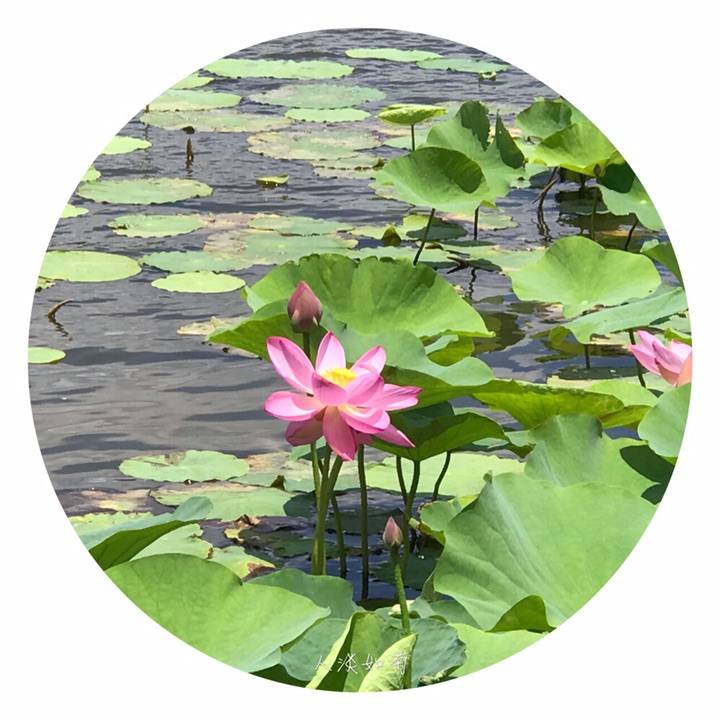 蓝天白云,泛舟荷塘,碧波荡漾。