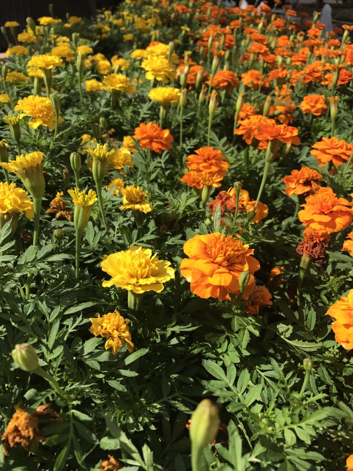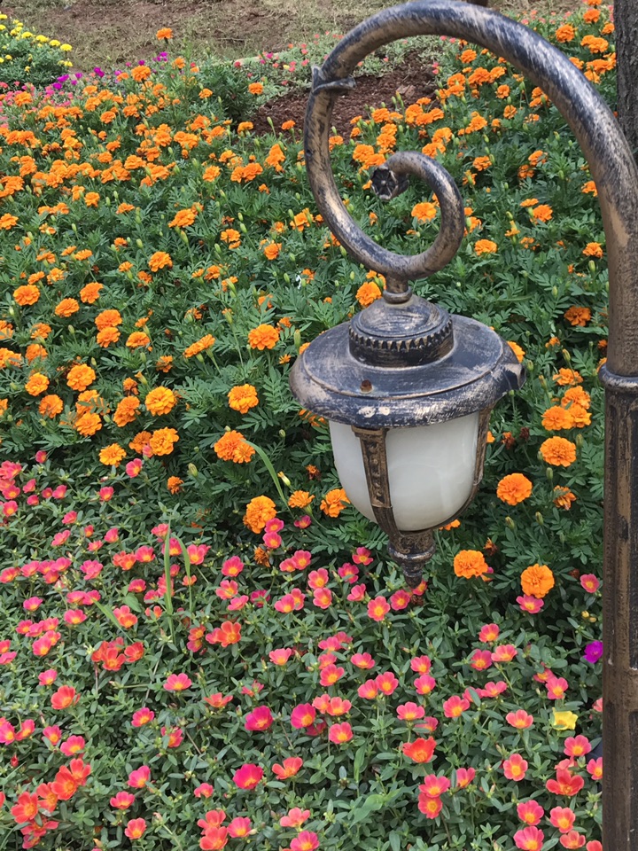 孔雀草在另一侧亭亭玉立,姿态婀娜。如果可以忽略它的销魂味道,世界会更美好。