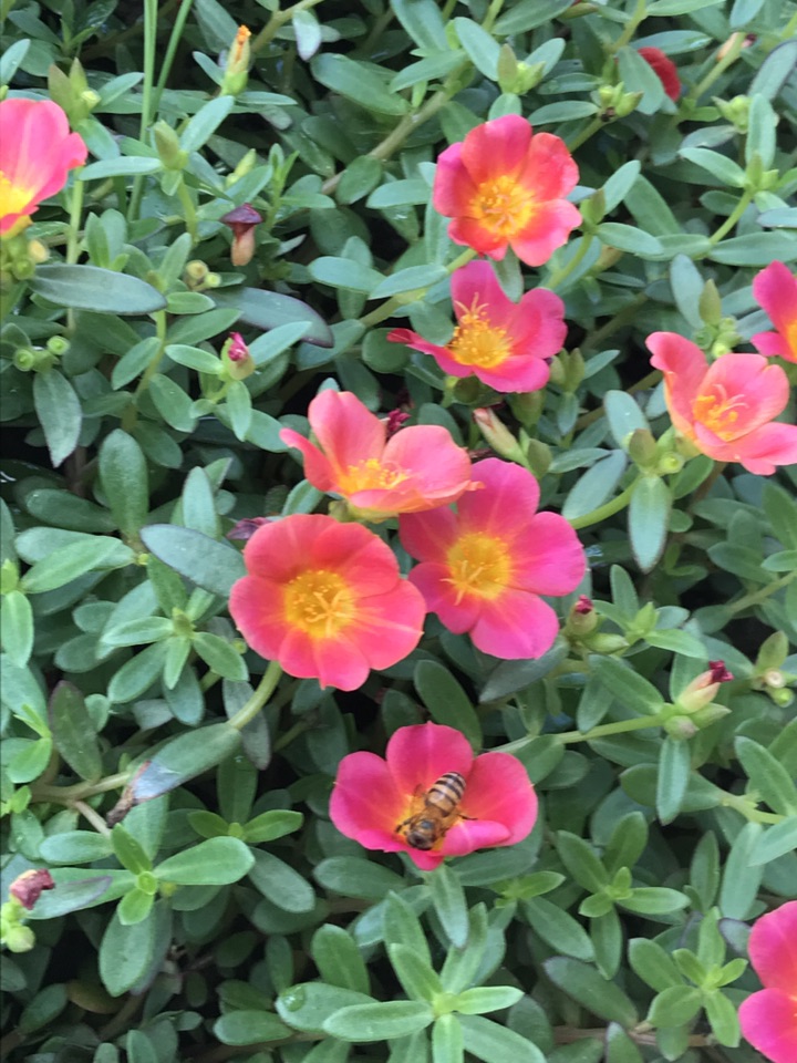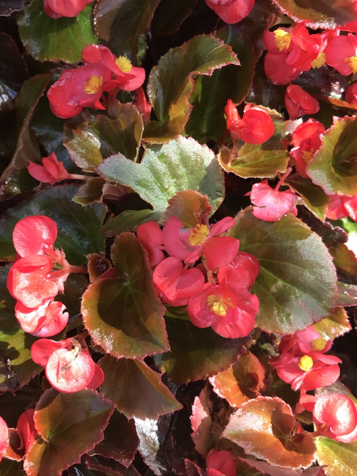 四季海棠在烈日下嗞嗞冒油。