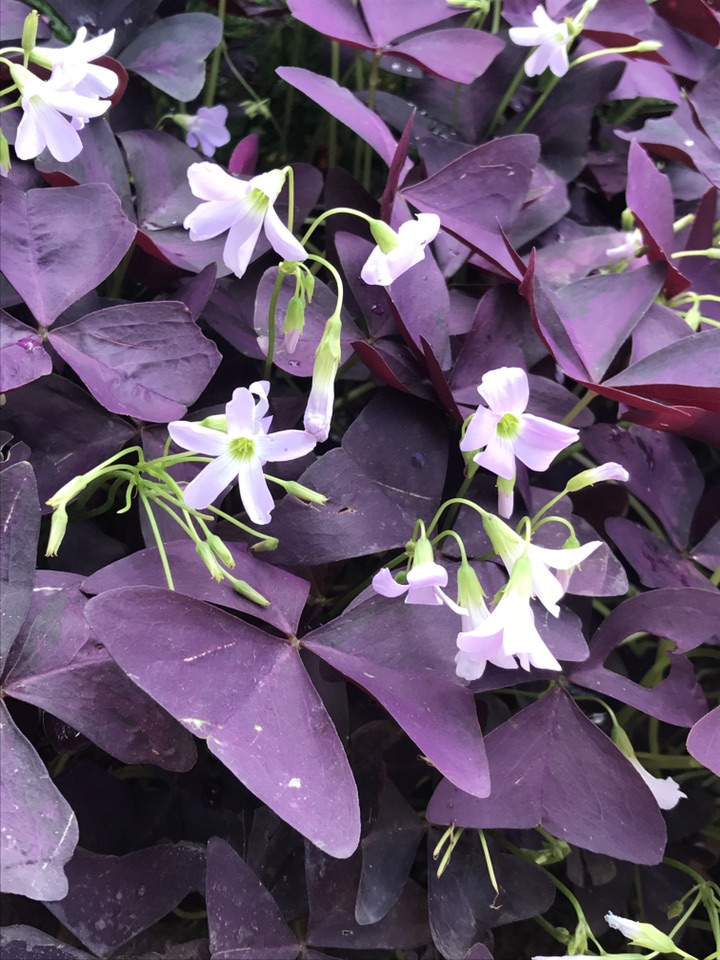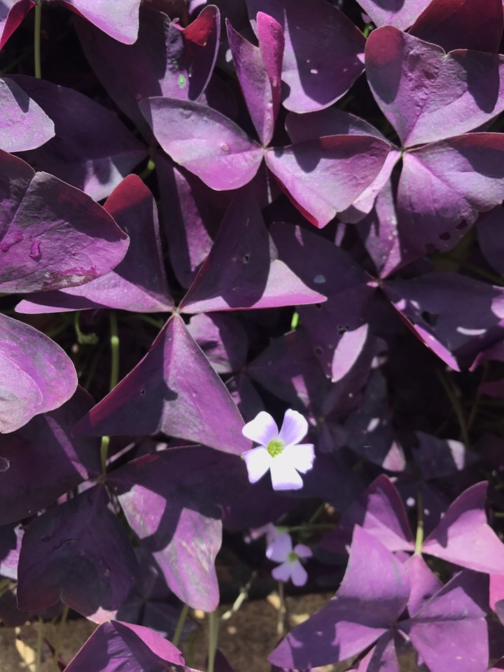 紫叶酢浆草越晒越精神,看见镜头转过来赶忙招来几个爱俏的姑娘摆好了姿势。