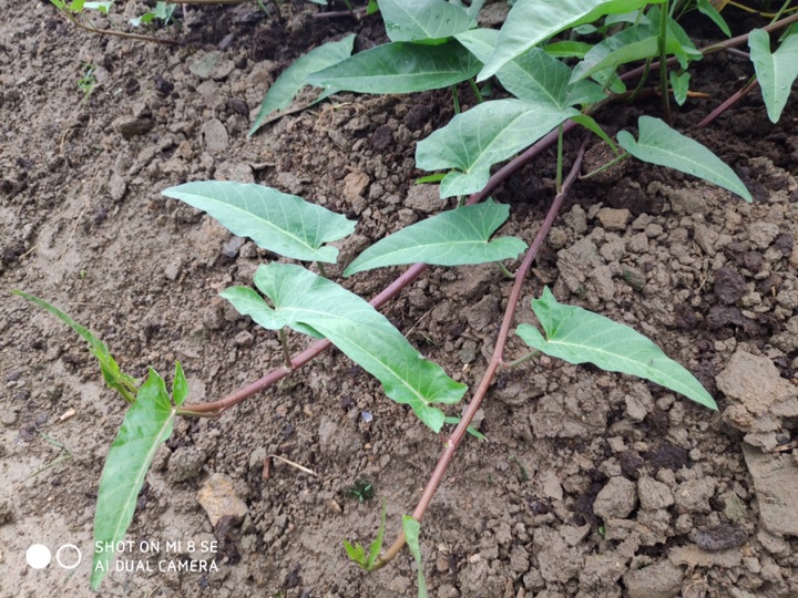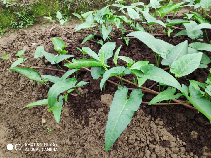 很多人看到这个估计得说是空心菜了,其实不然,在我们这边空心菜是空心菜,这个是这个,因为不知道它的学名,我也不知道它究竟是什么菜。和空心菜不同的是它更晚,而且是藤蔓生长,茎还偏红,一般它上市了,我们这边人就基本不吃空心菜了,这个的口感会更好点儿