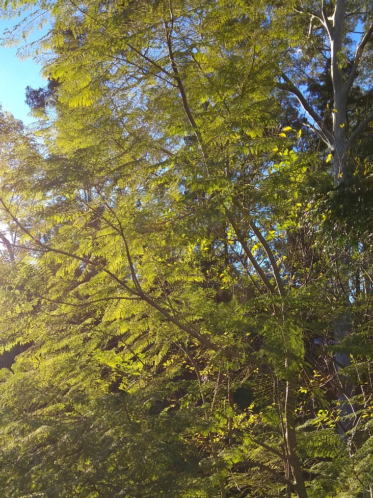 早晨阳光是浓浓的金色,醇和温暖,光线以小夹角照入,能在林木下穿透得很远